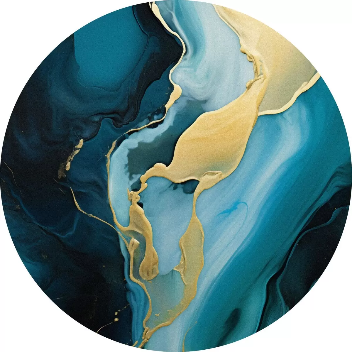 Ronde schilderijen Tealblauw abstract met een stroom oker Nr r46530