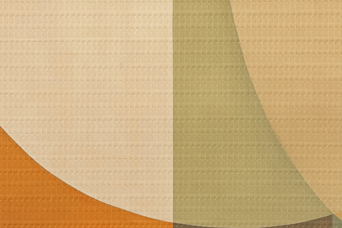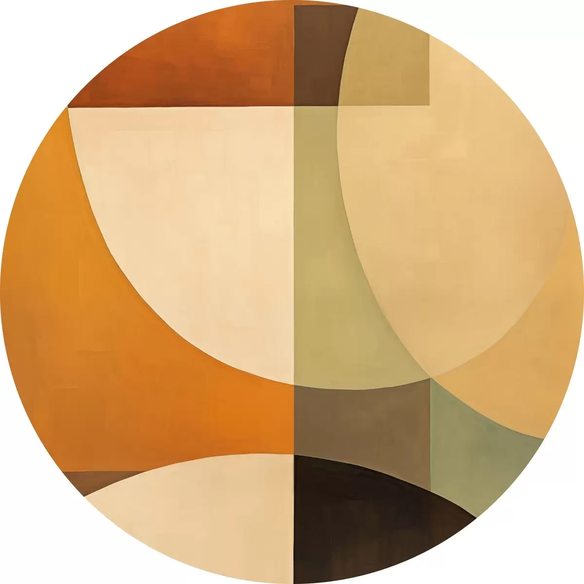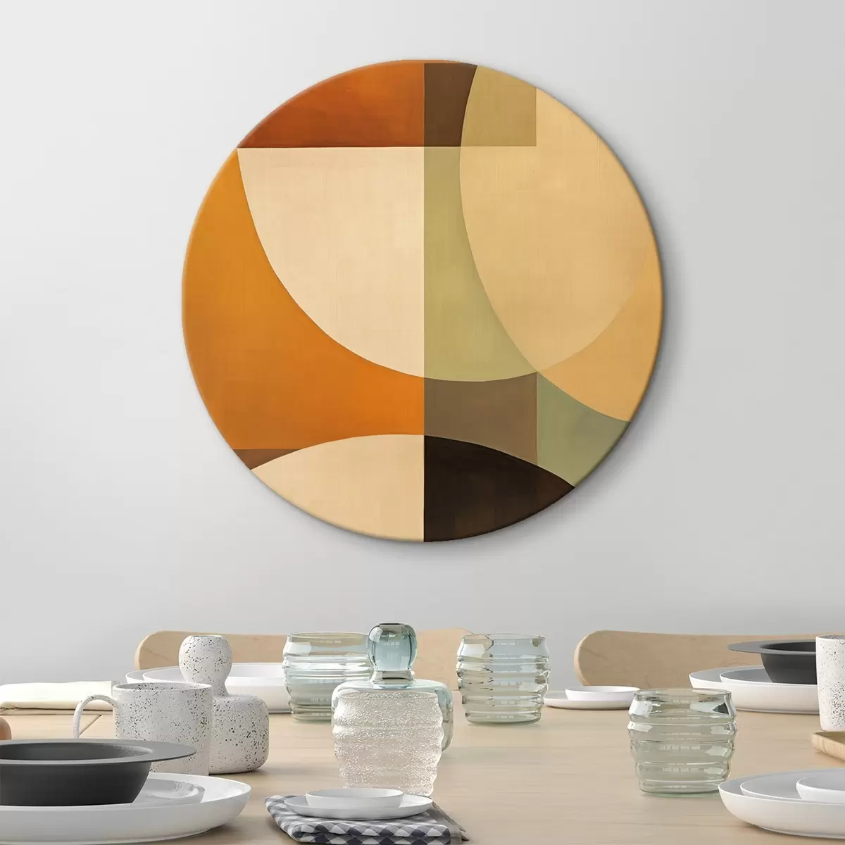 Ronde schilderijen Grote, elkaar kruisende vormen in terracotta-olijfkleurige tinten Nr r46533