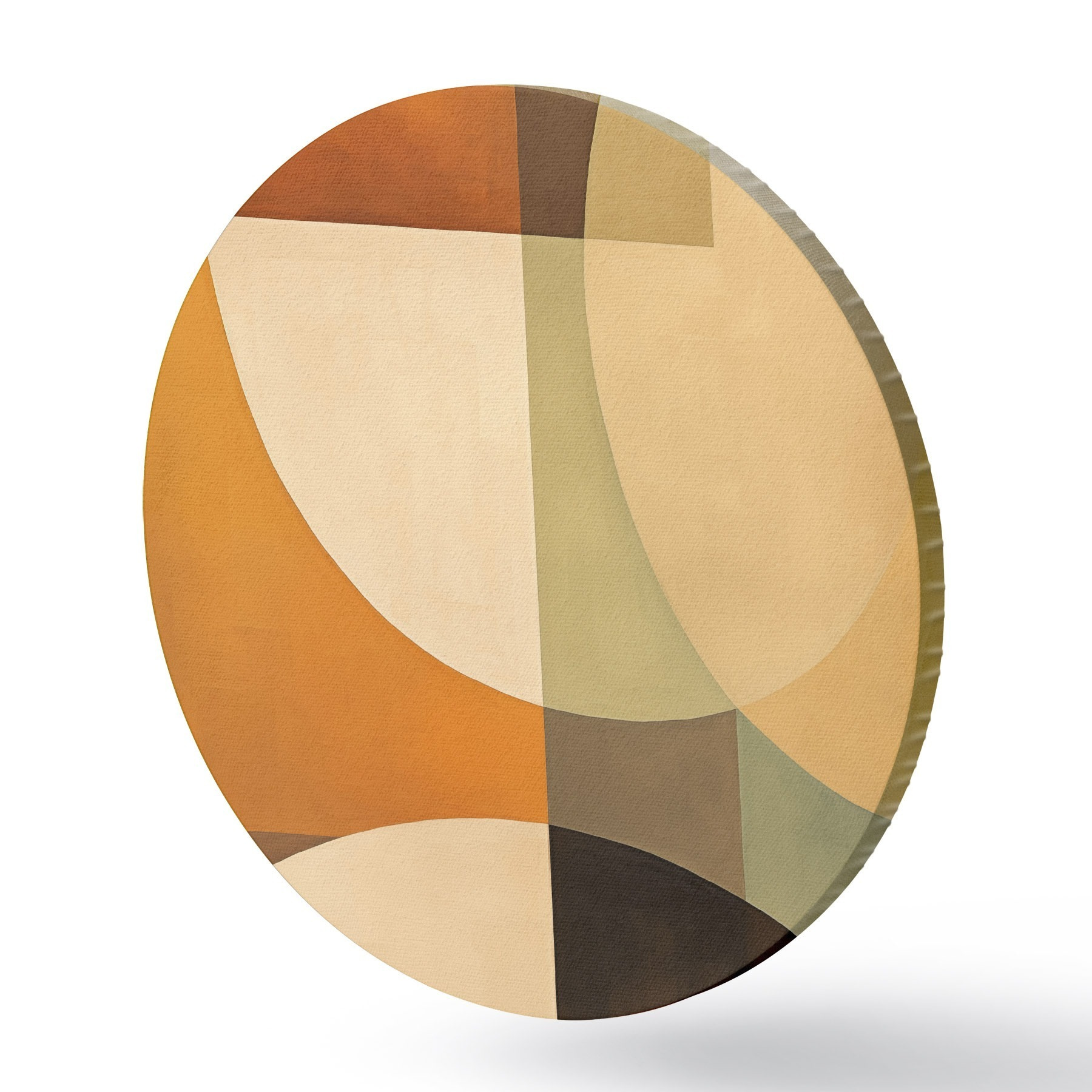 Ronde schilderijen Grote, elkaar kruisende vormen in terracotta-olijfkleurige tinten r46533