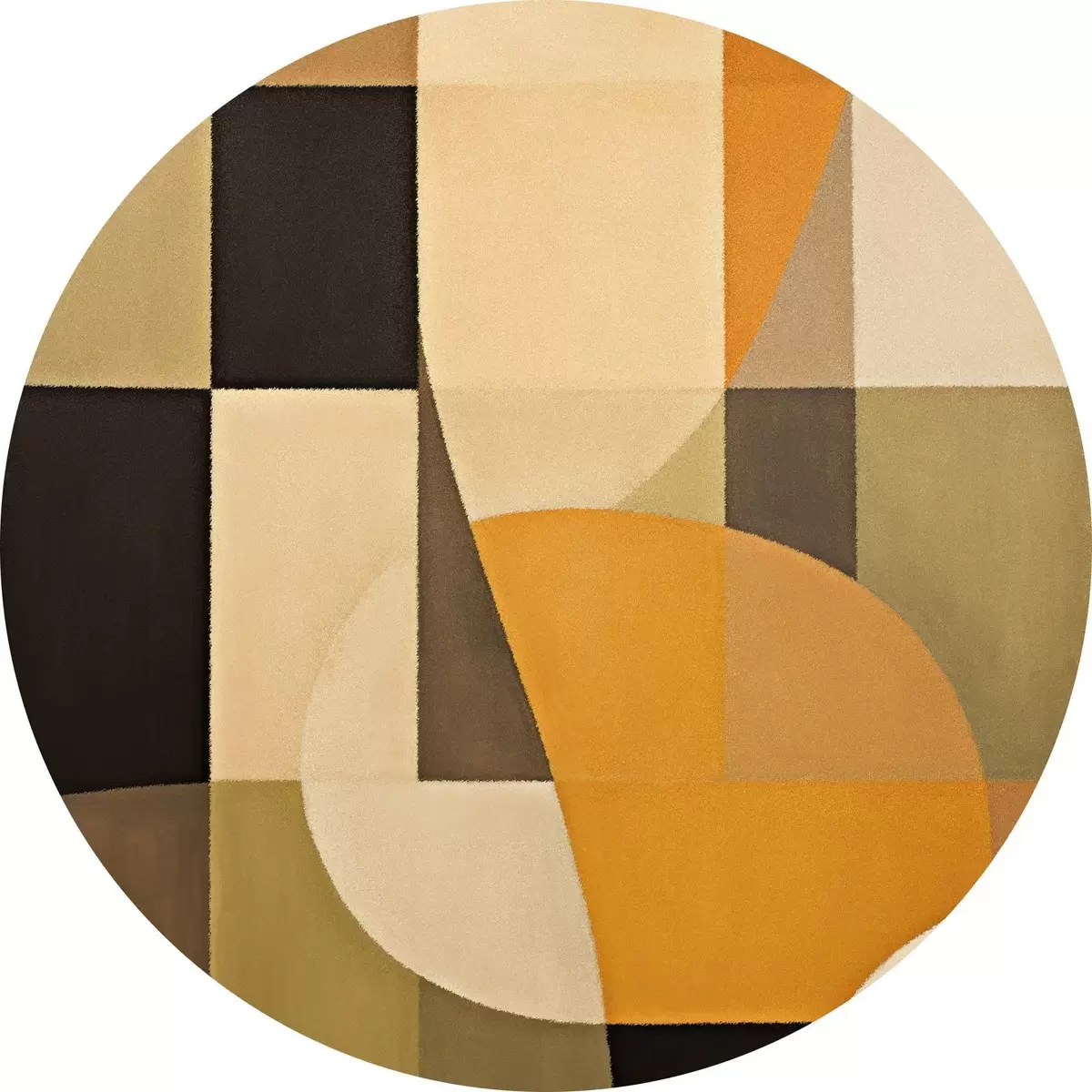Ronde schilderijen Patchwork van rechthoeken met een vloeiende oranje boog Nr r46534