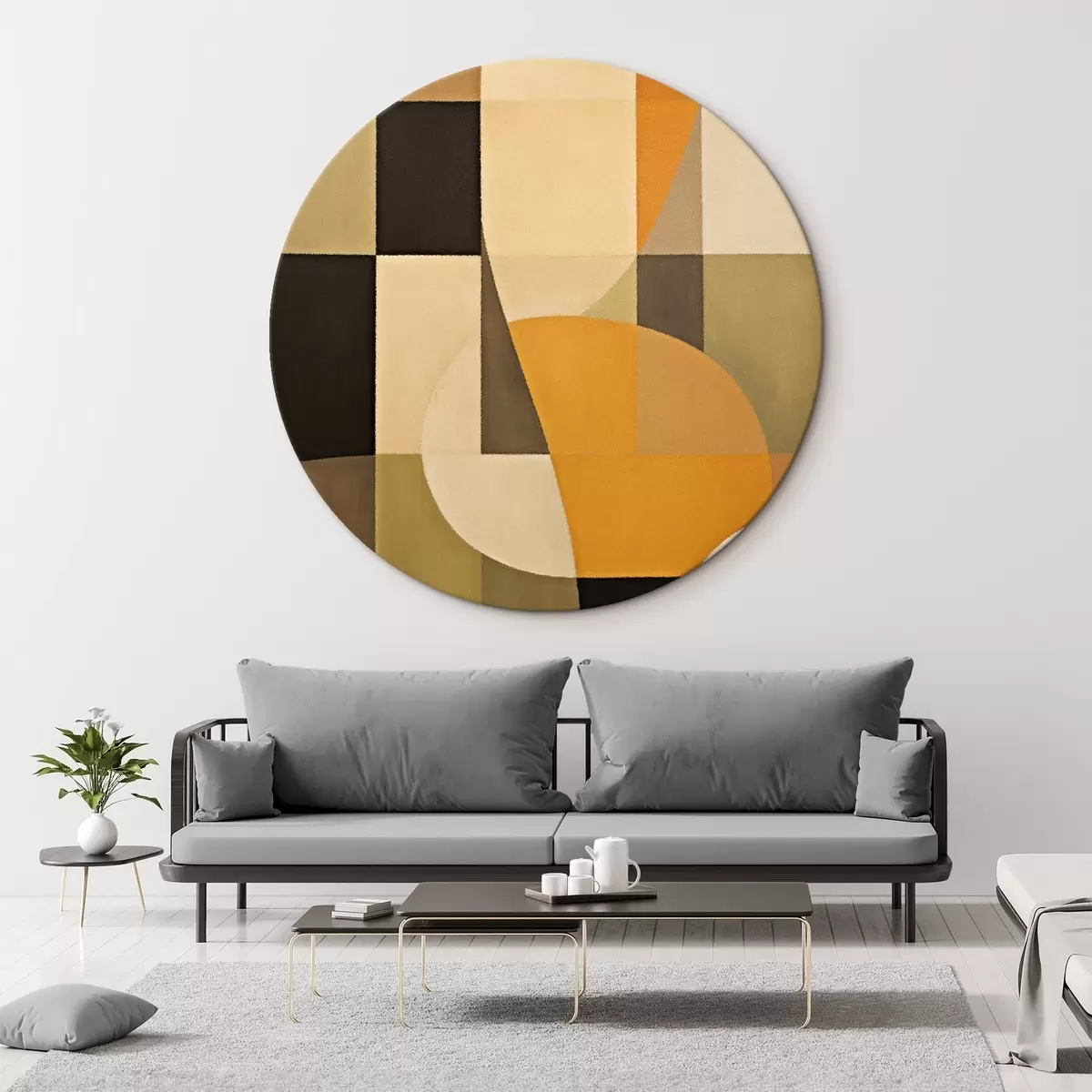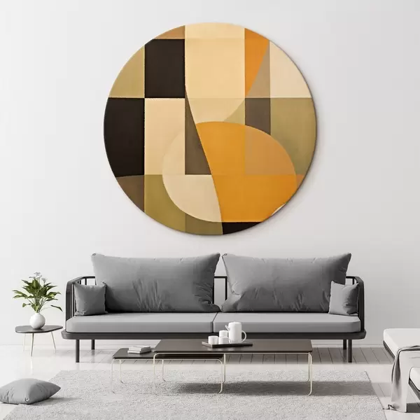 Ronde schilderijen Patchwork van rechthoeken met een vloeiende oranje boog r46534
