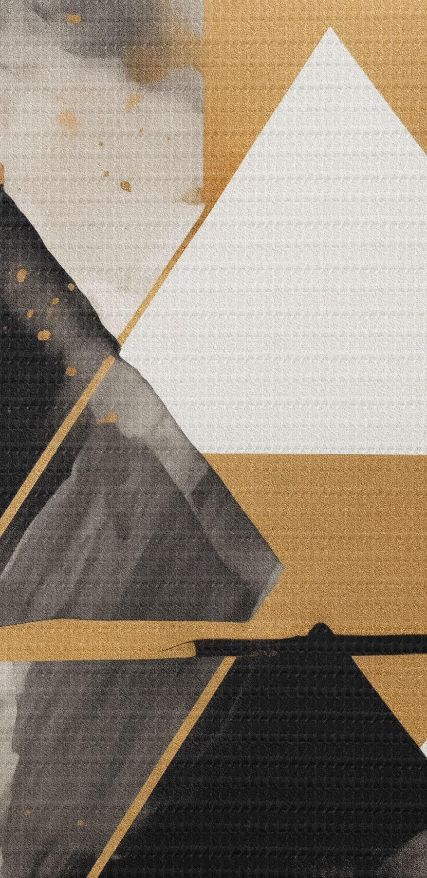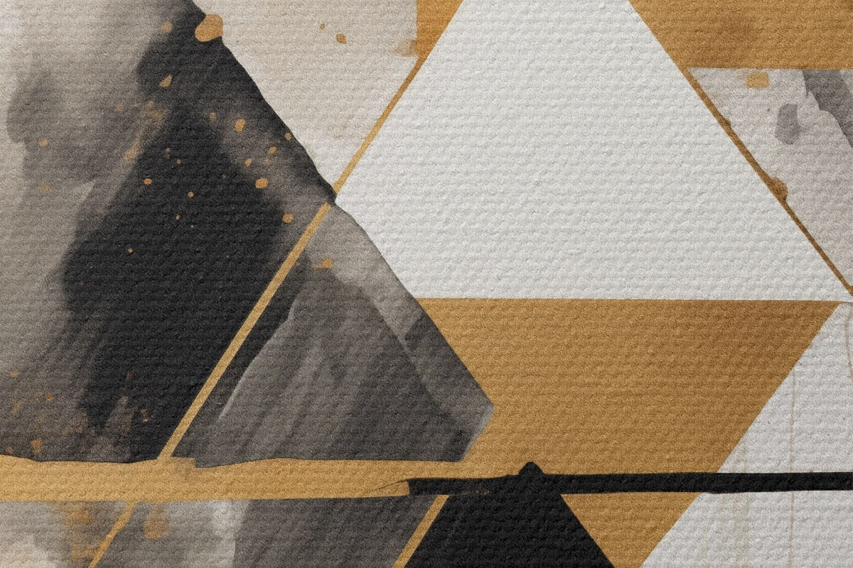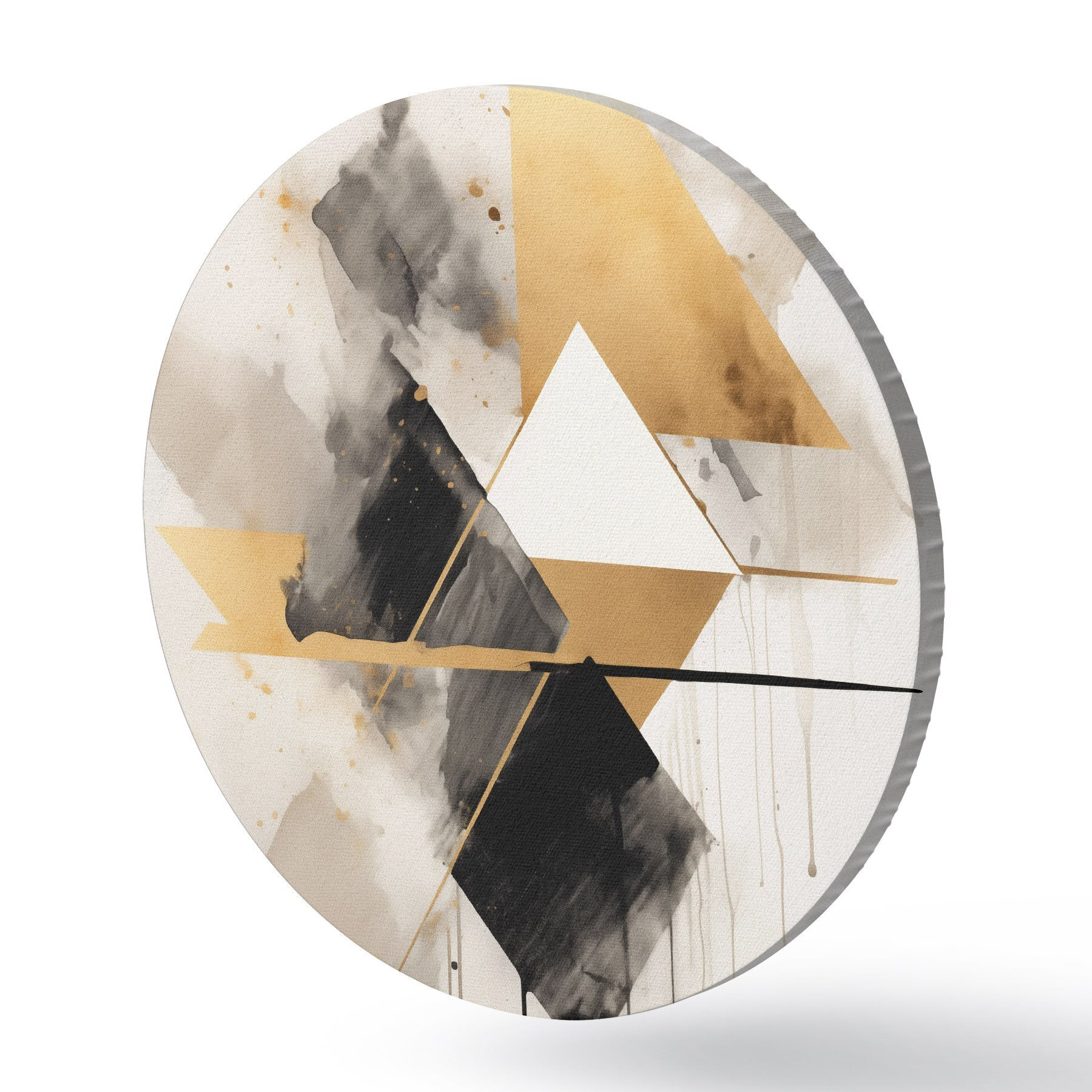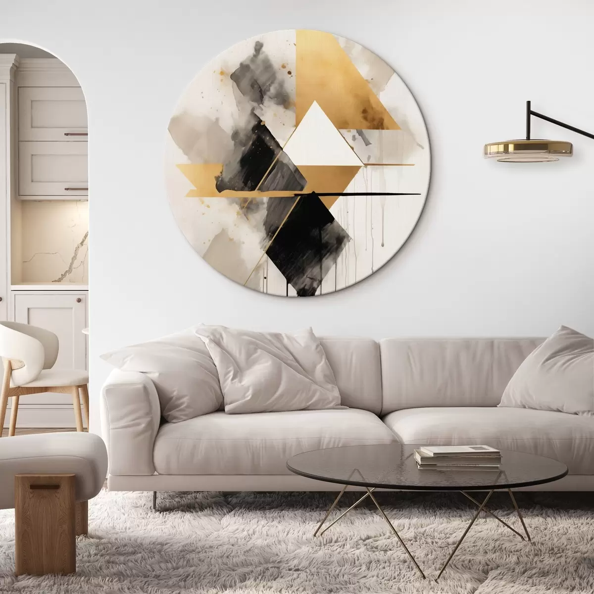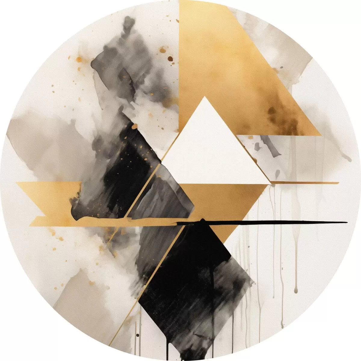 Ronde schilderijen Geometrie met driehoeken en een zwarte ruit, beige lijnen Nr r46539