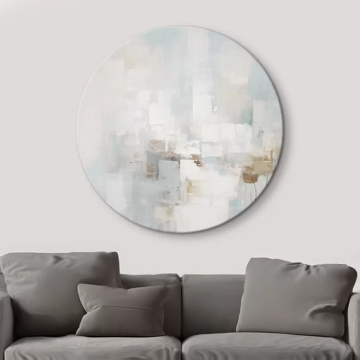 Ronde schilderijen Lichte pastelkleuren: blauw, beige, wit Nr r46546