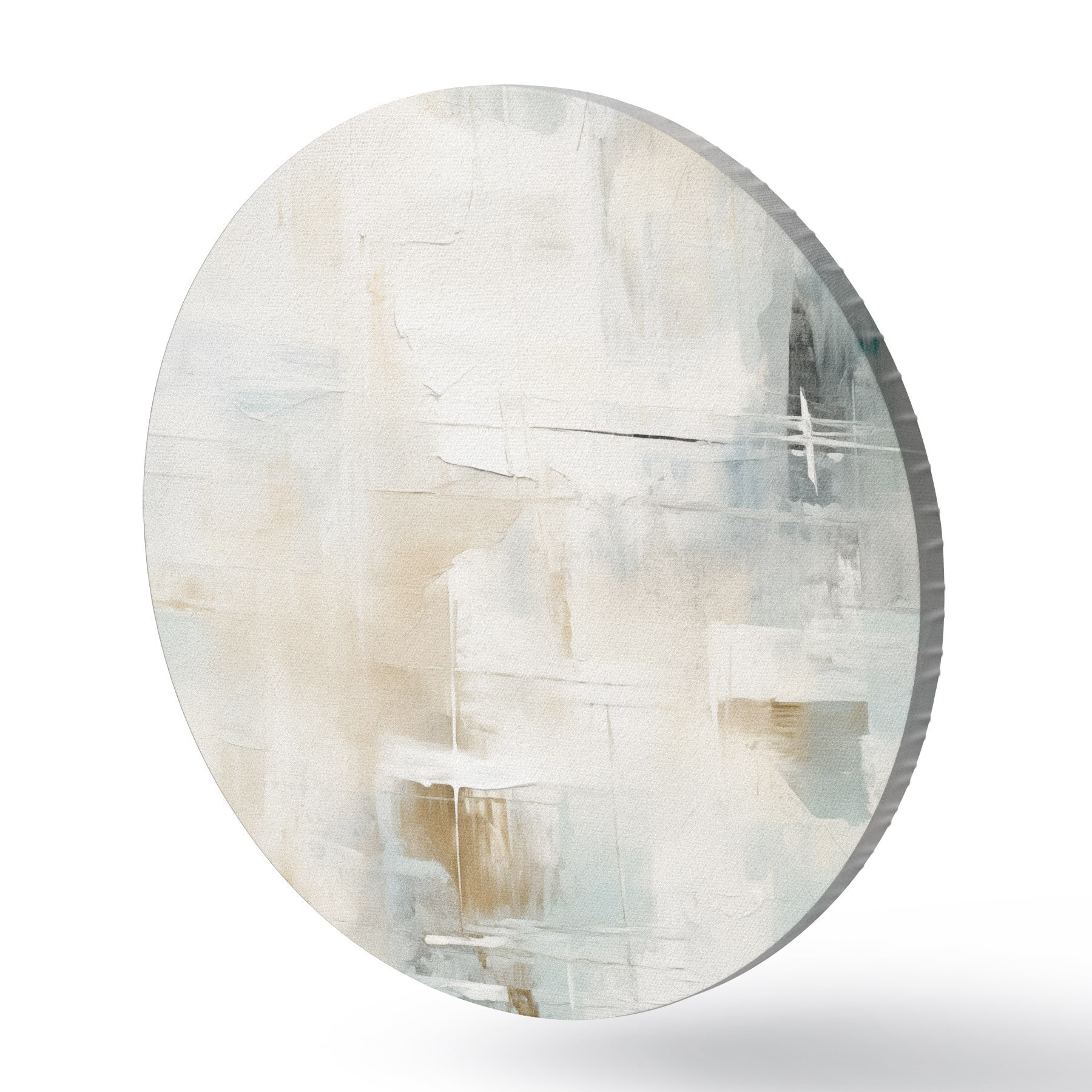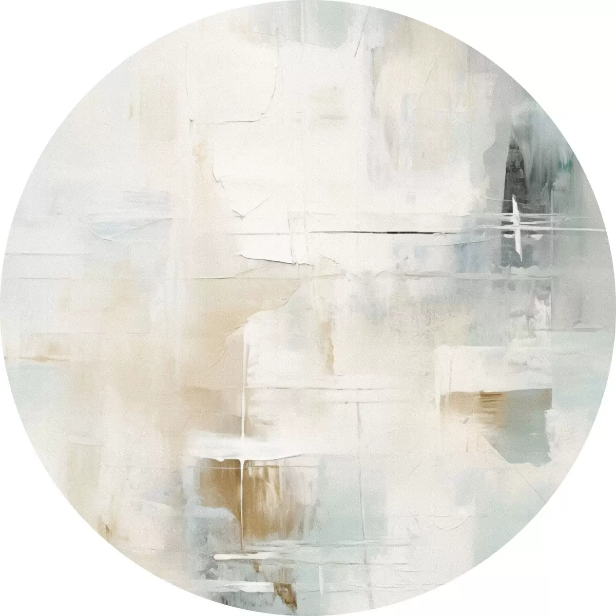 Ronde schilderijen Luchtige streken van blauw en beige op wit Nr r46547
