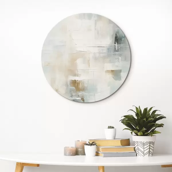Ronde schilderijen Luchtige streken van blauw en beige op wit r46547