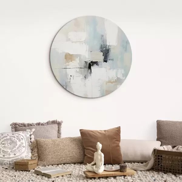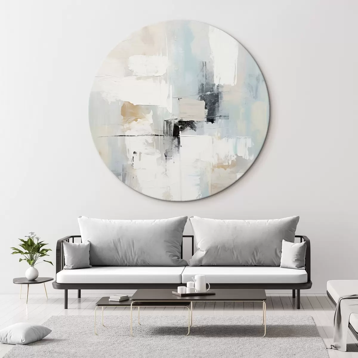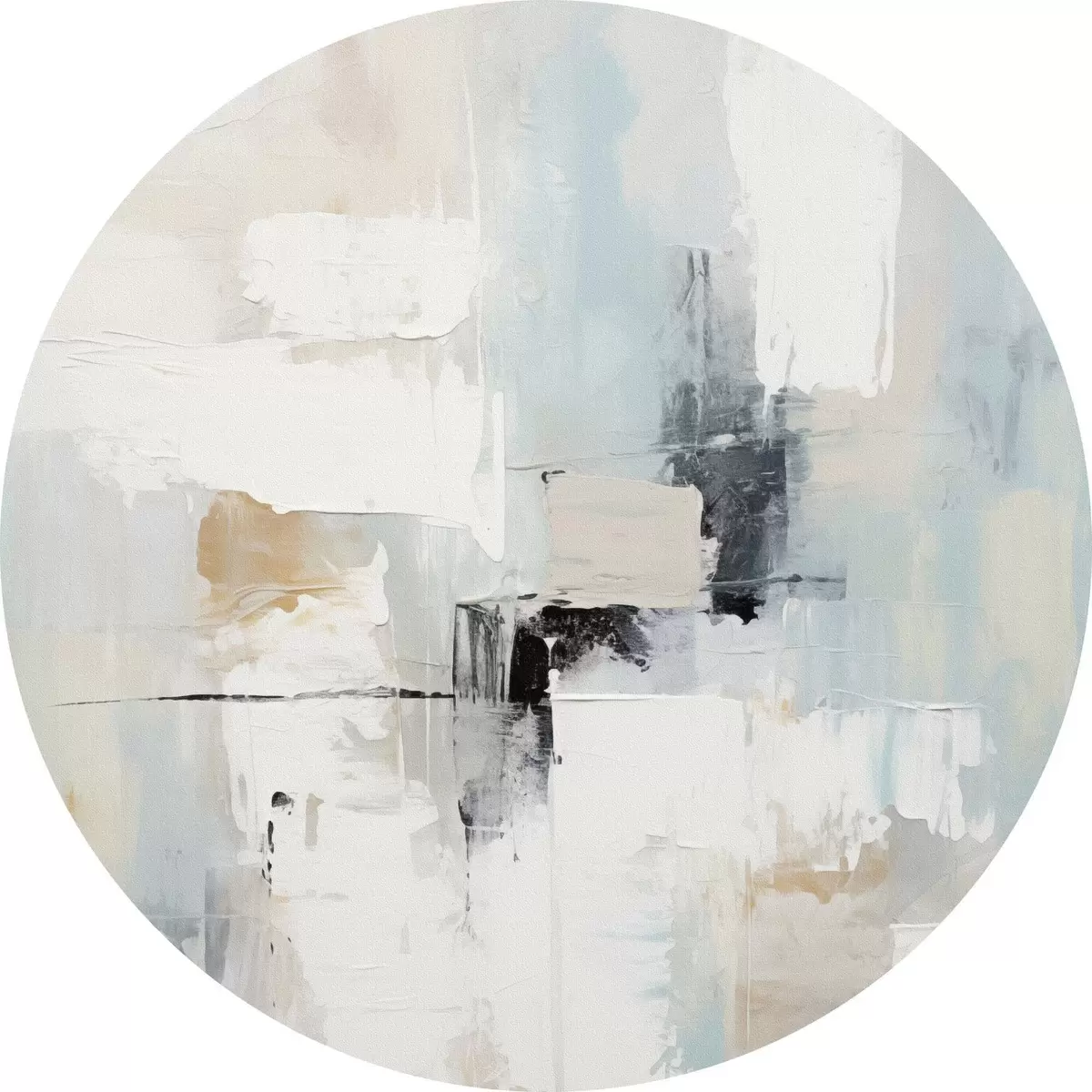Ronde schilderijen Lichtgekleurd abstract met een zwart accent Nr r46548