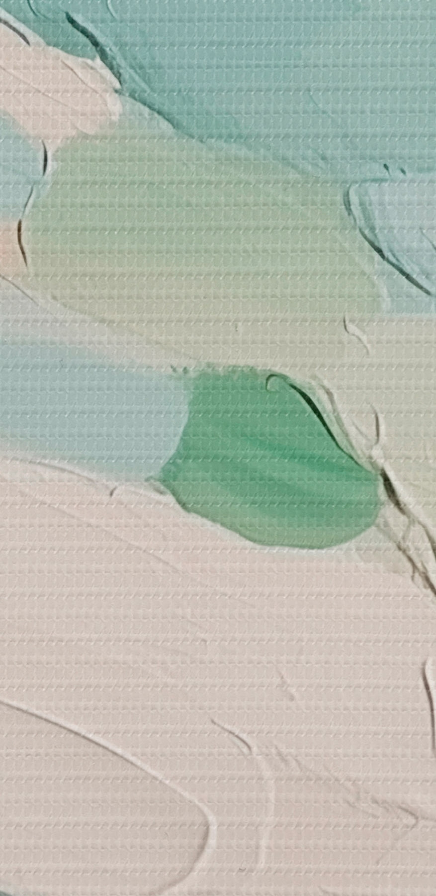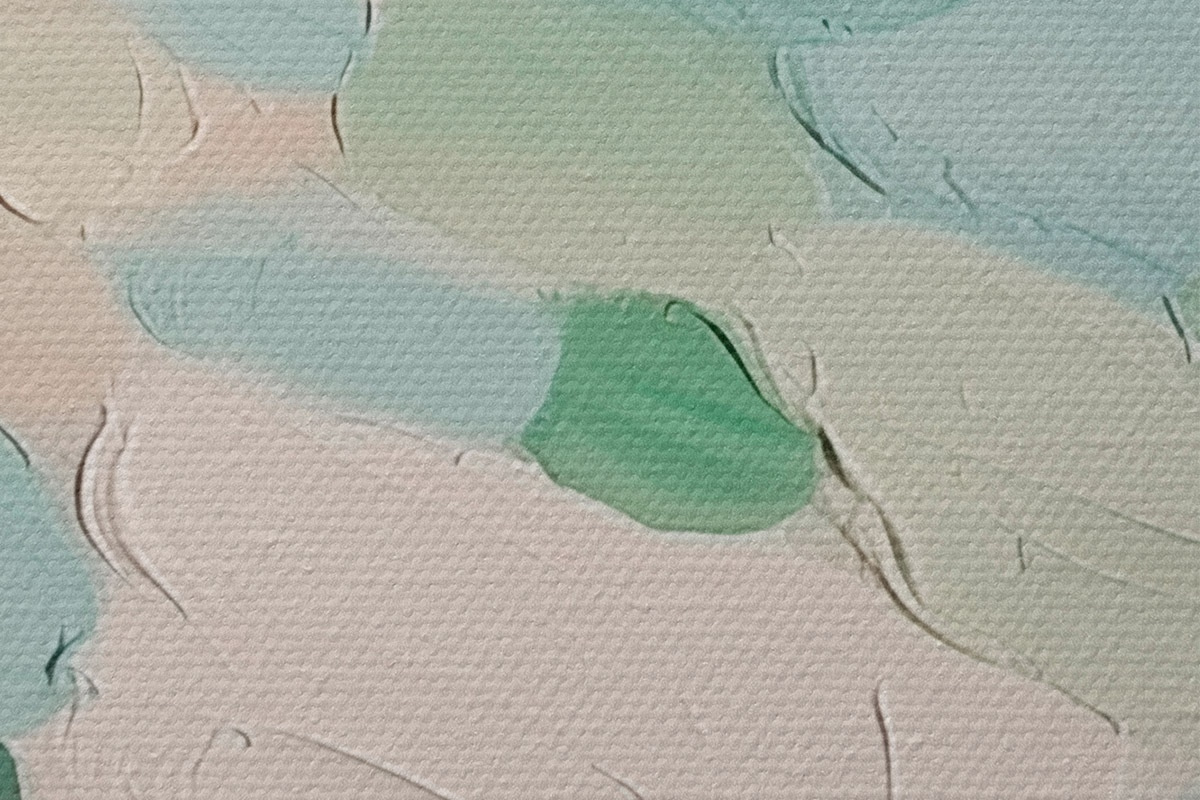Het schilderij kan direct na ontvangst worden opgehangen. Het schilderij wordt opgespannen op een 2 cm breed houten spieraam.