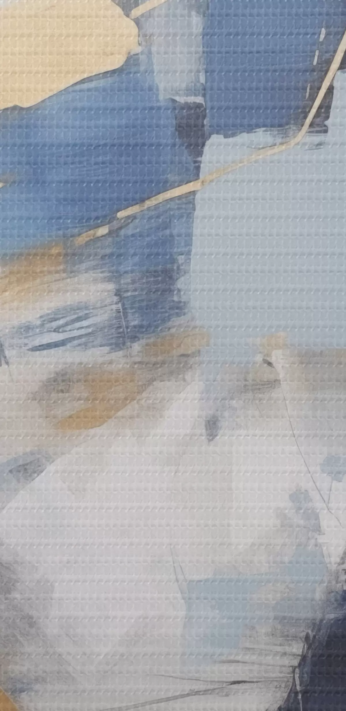 Het schilderij kan direct na ontvangst worden opgehangen. Het schilderij wordt opgespannen op een 2 cm breed houten spieraam.