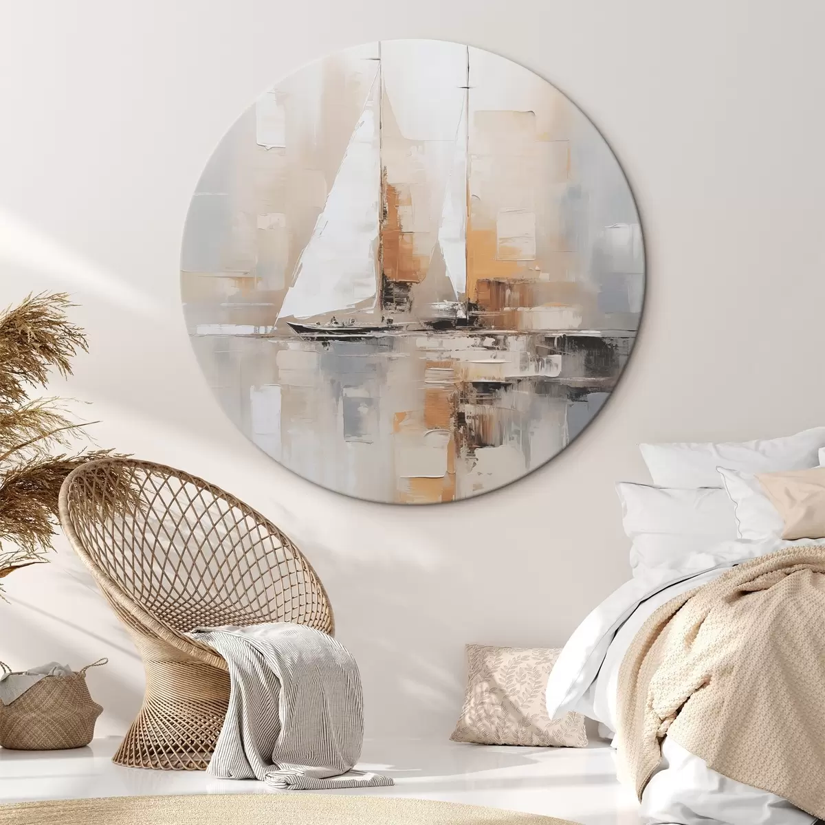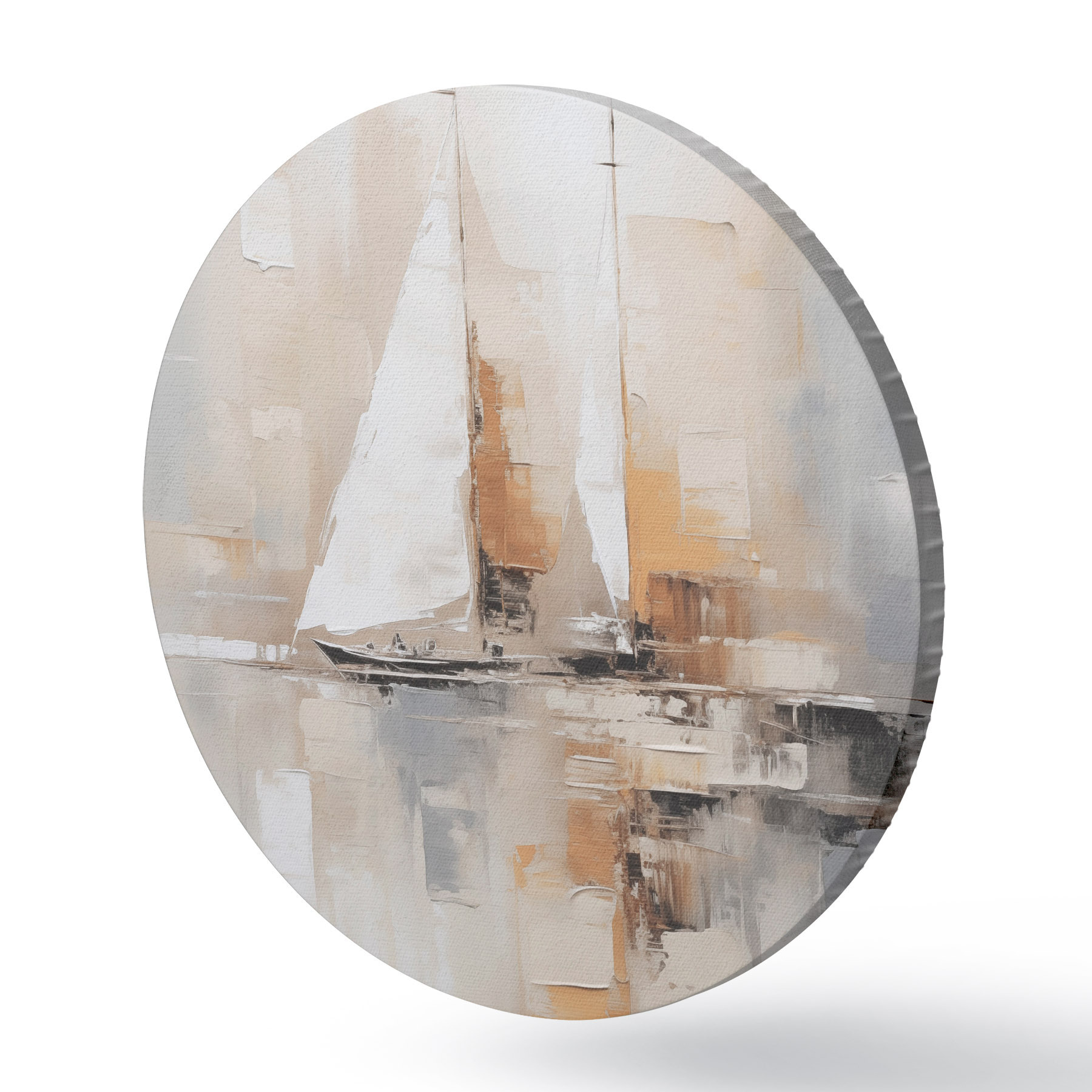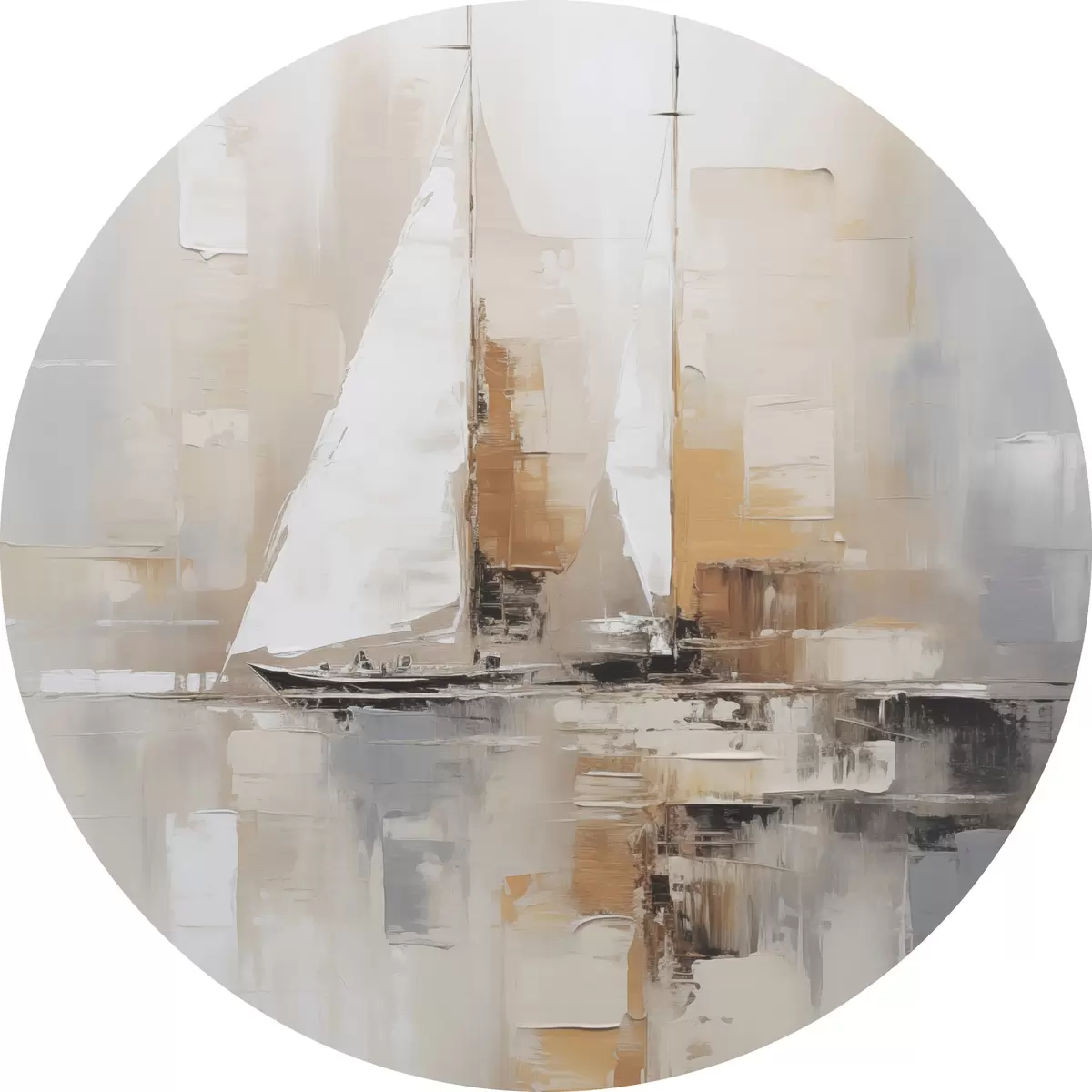Ronde schilderijen Zeilboot abstractie Nr r46566