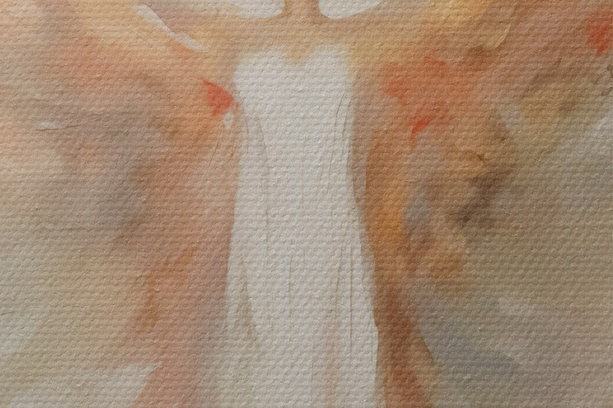 Het schilderij kan voorzichtig worden schoongeveegd met een droge zachte doek of spons; het wordt niet aanbevolen om natte producten te gebruiken. Het gebruik van een vochtige spons is alleen toegestaan als het schilderij gevernist is.