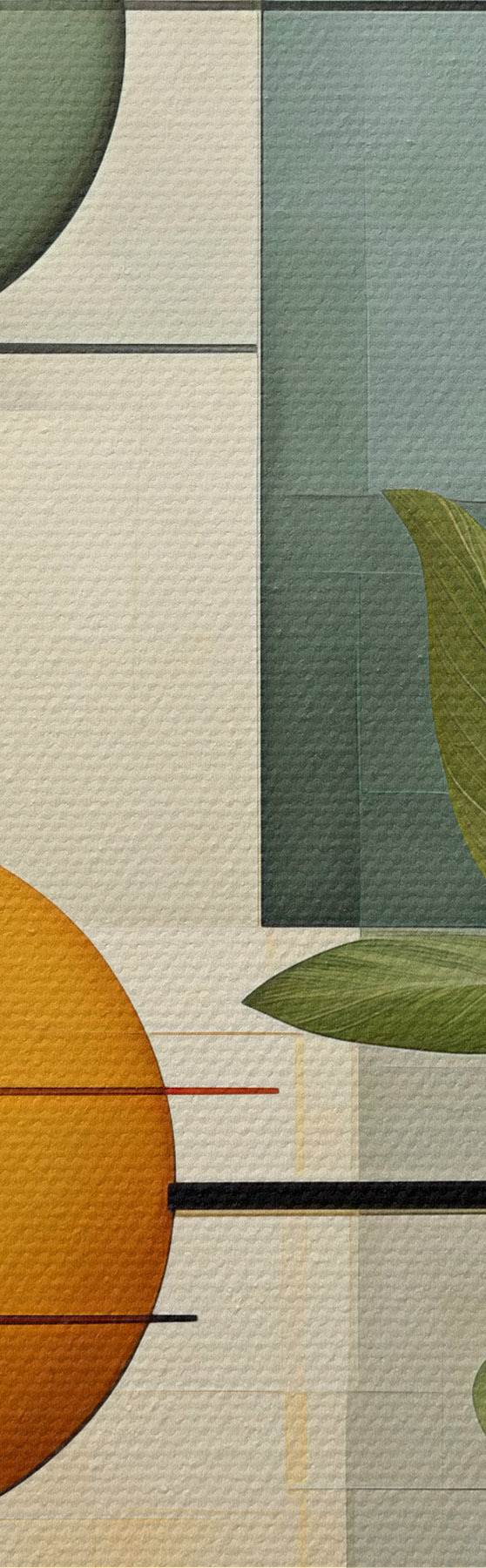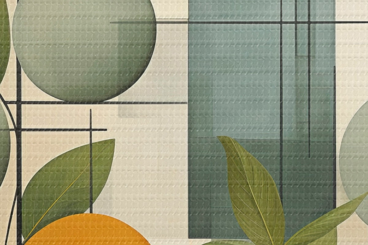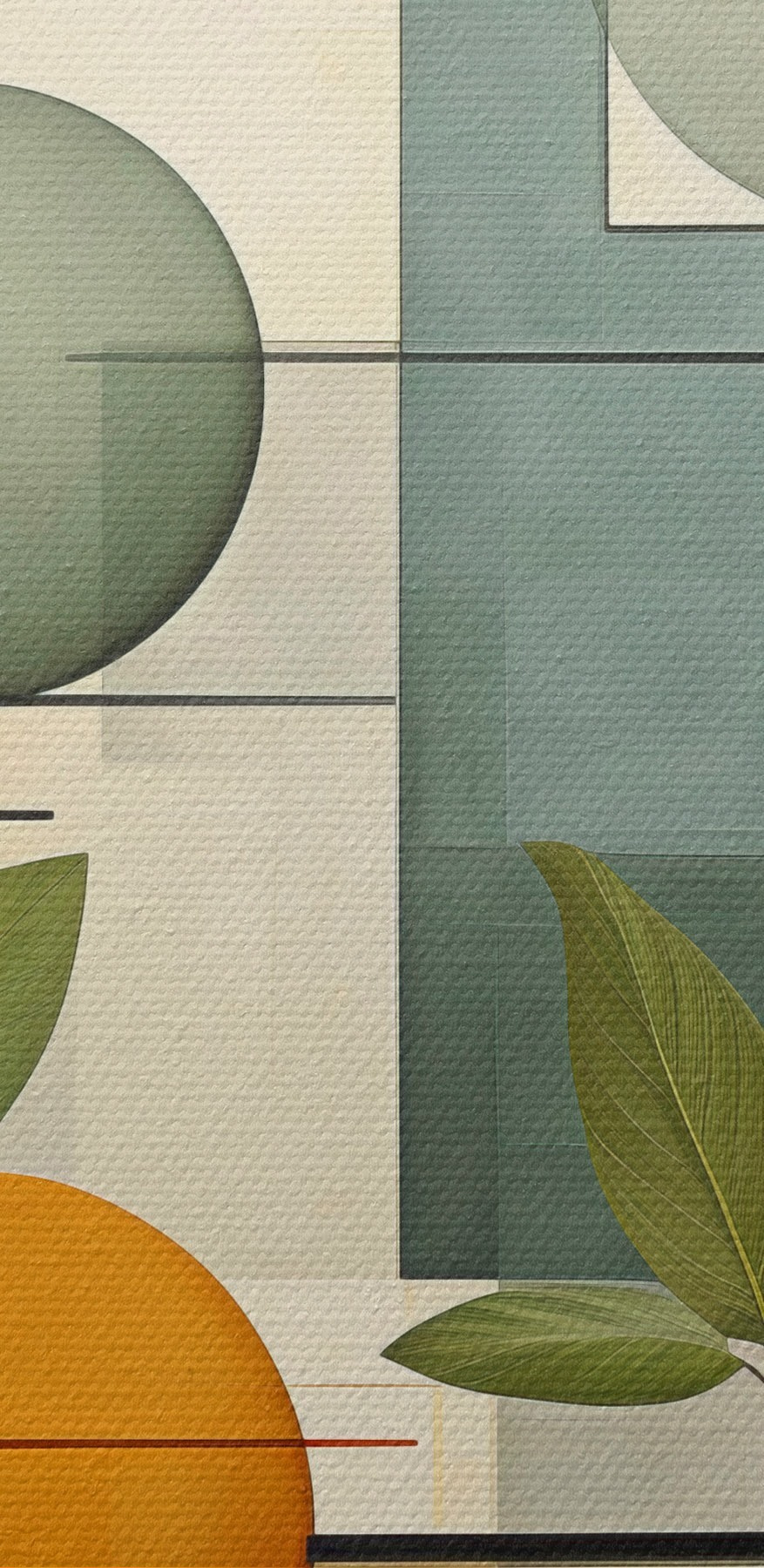 Ronde schilderijen Geometrische abstractie met planten Nr r46579
