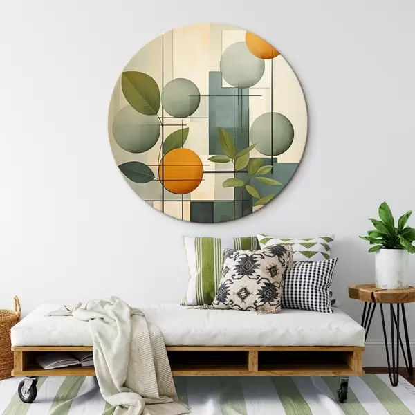 Ronde schilderijen Geometrische abstractie met planten r46579