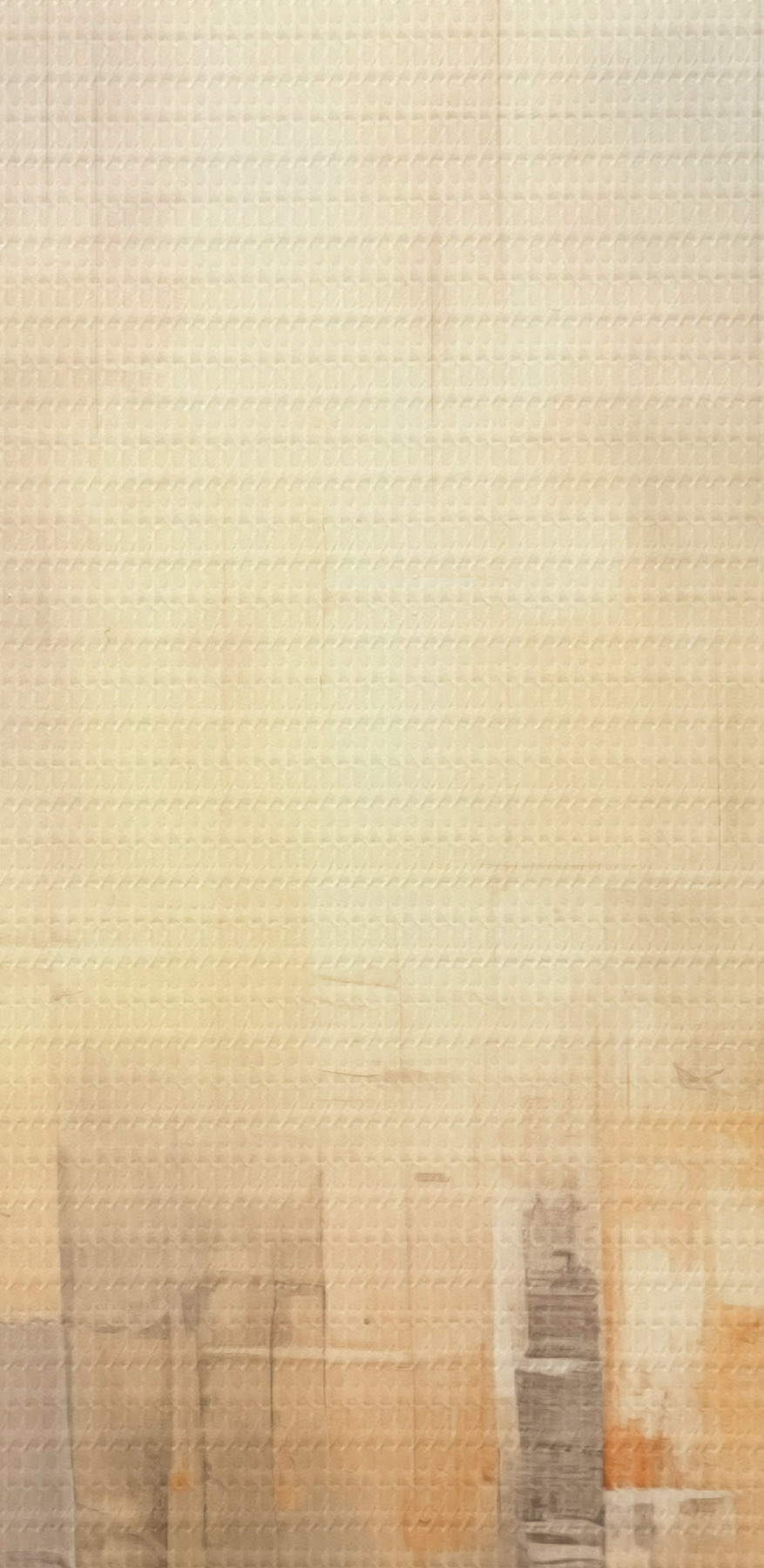 De fijne weving van draden op dit doek lijkt op het oppervlak van professionele schildersdoeken.