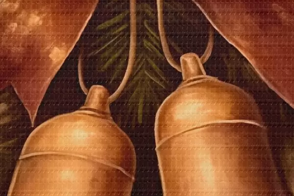 Ronde schilderijen Vintage kerstdecoratie met twee belletjes en een strik r46626
