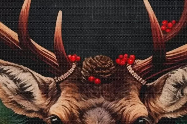Ronde schilderijen Portret van een hert met een kerstkrans Nr r46628