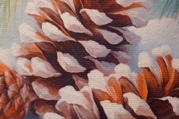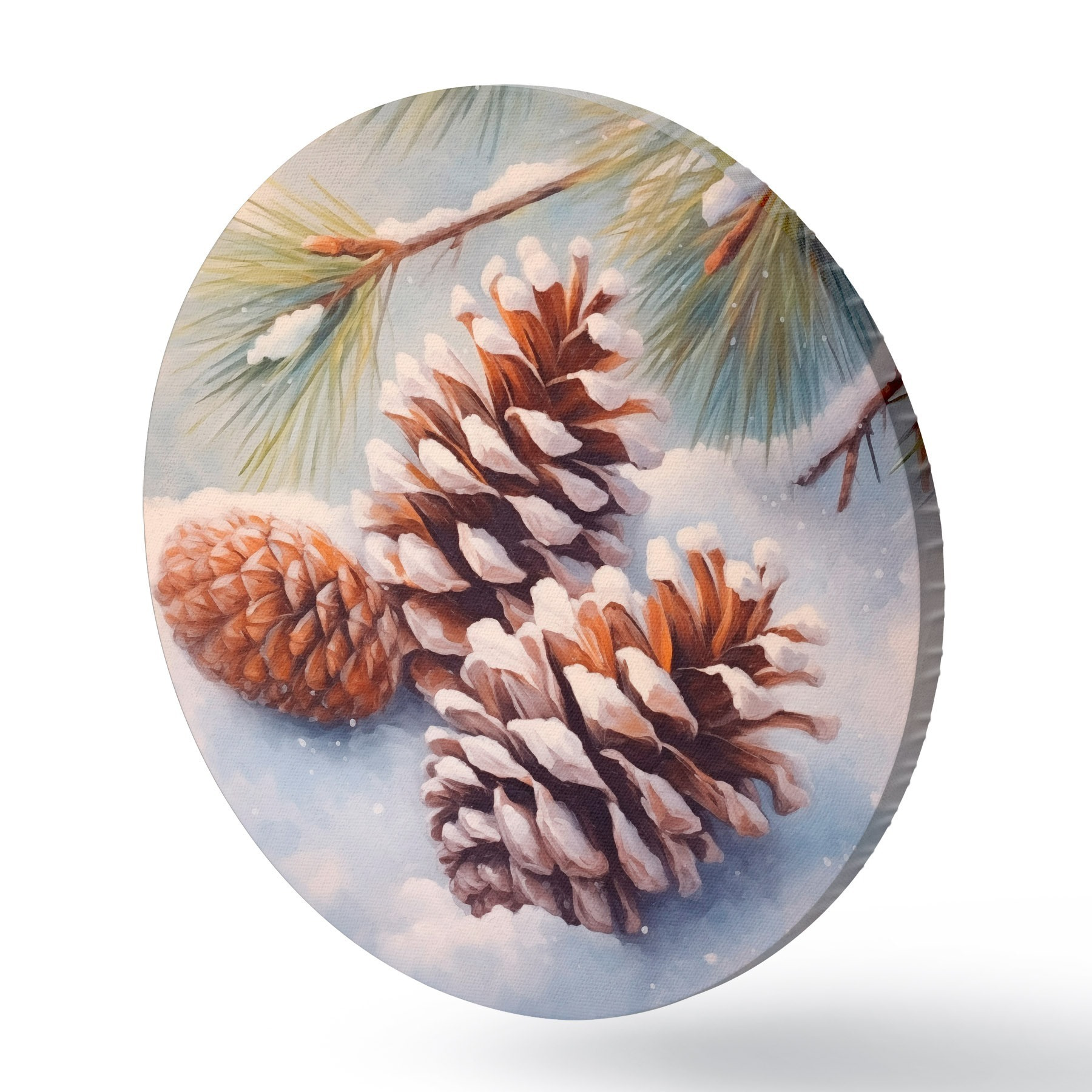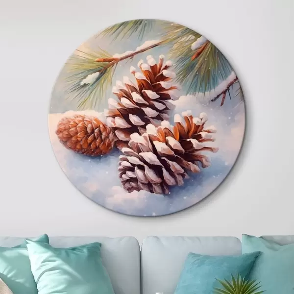 Ronde schilderijen Met sneeuw bedekte dennenappels en takken Nr r46631