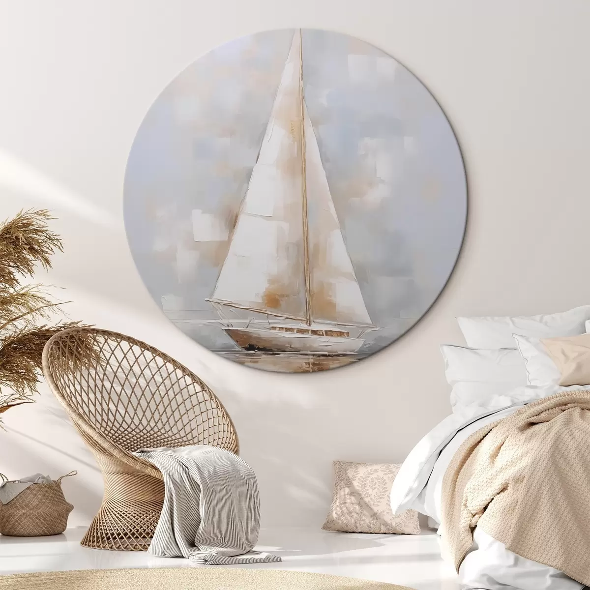 Ronde schilderijen Schilderij imitatie zeilboot Nr r46677