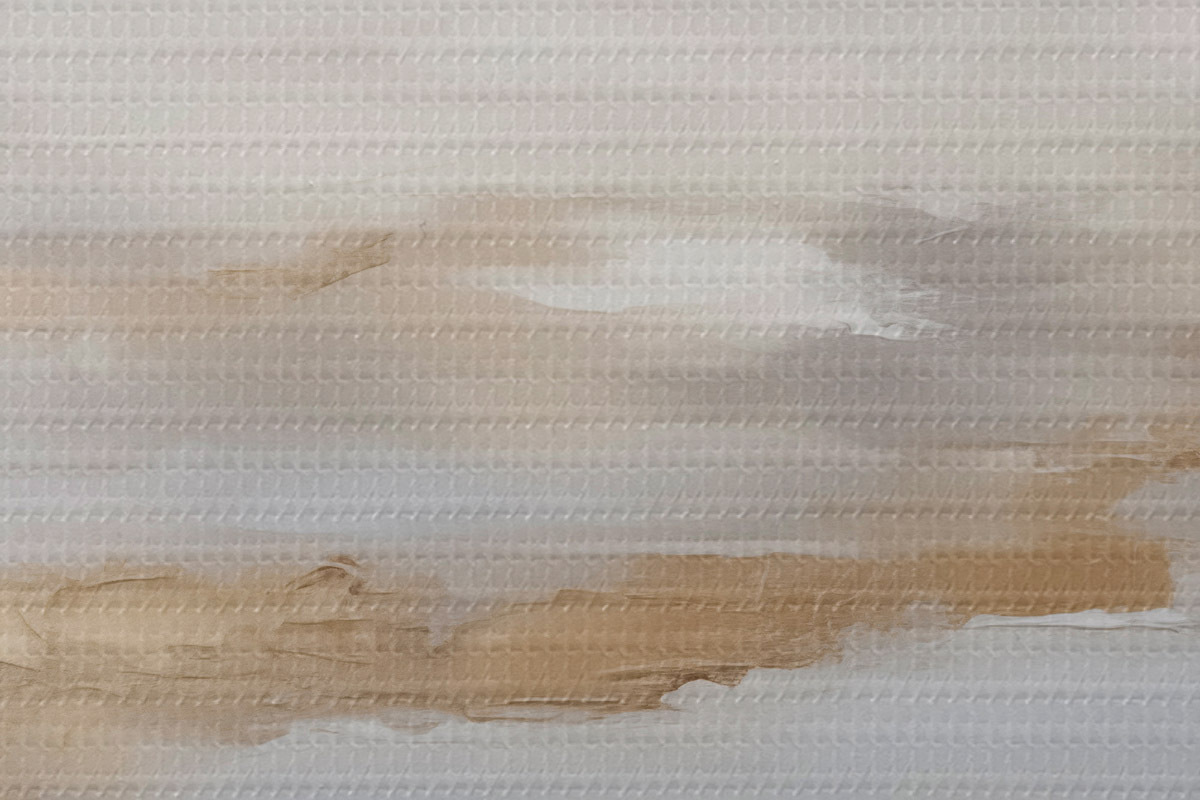 De fijne weving van draden op dit doek lijkt op het oppervlak van professionele schildersdoeken.
