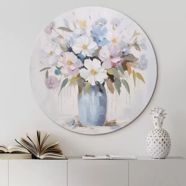 Ronde schilderijen Bloemen in een vaas imitatie schilderij Nr r46714