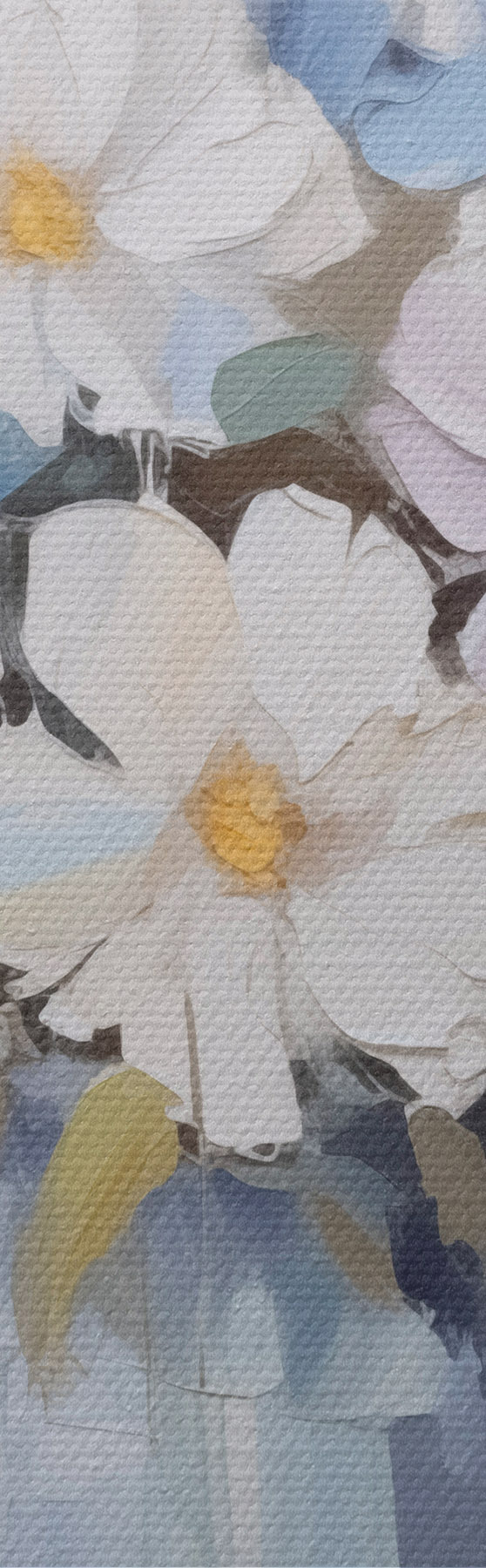 Er zijn drie soorten materiaal te bestellen: Economic Canvas - een dicht en duurzaam materiaal voor digitaal printen, identiek aan schildersdoek, waterdicht oppervlak, realistische weergave van details, materiaal met gemiddelde korrel. Premium Canvas - de textuur lijkt op die van schildersdoek (verweven kleine draden). Zachte, gedetailleerde reproductie van de afbeelding op een mat oppervlak. Eco-Premium - hoogwaardige 100% katoenen stof. Dankzij de natuurlijke katoenvezels is het materiaal duurzaam en slijtvast. Uitstekende kleurweergave en detail.