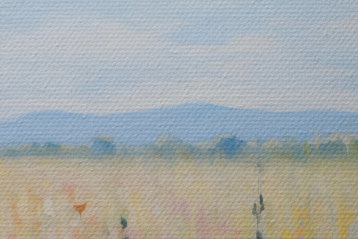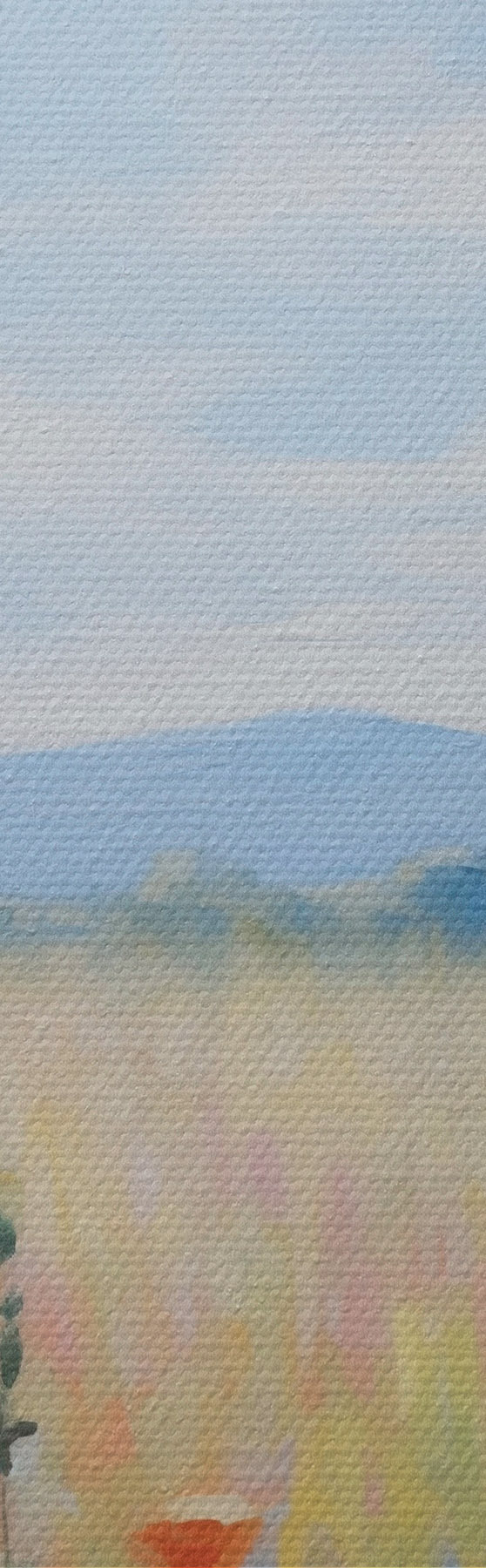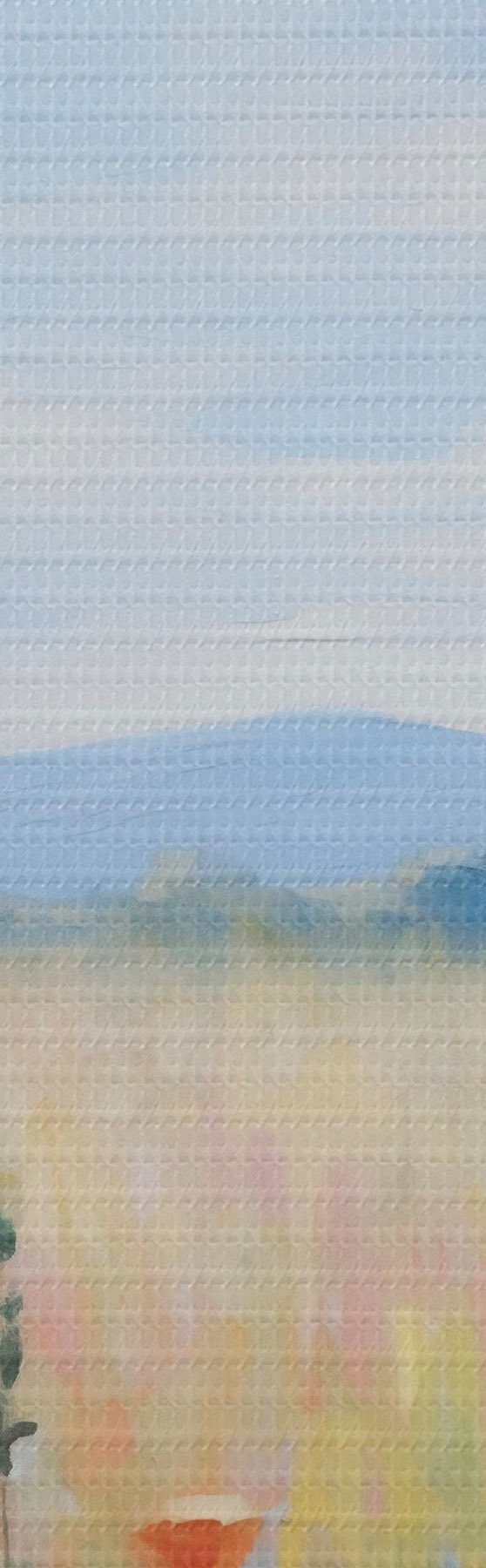 Het schilderij kan direct na ontvangst worden opgehangen. Het schilderij wordt opgespannen op een 2 cm breed houten spieraam.