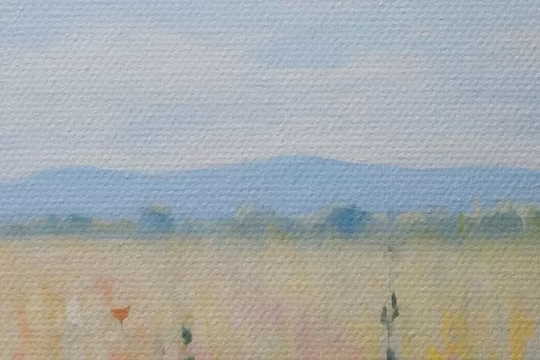 Het schilderij kan voorzichtig worden schoongeveegd met een droge zachte doek of spons; het wordt niet aanbevolen om natte producten te gebruiken. Het gebruik van een vochtige spons is alleen toegestaan als het schilderij gevernist is.