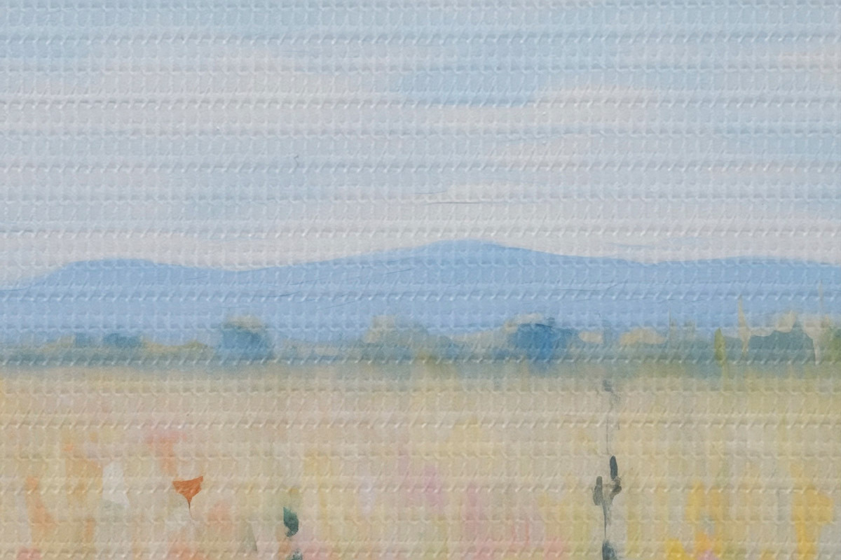 De fijne weving van draden op dit doek lijkt op het oppervlak van professionele schildersdoeken.