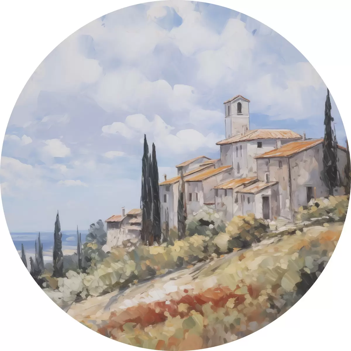Ronde schilderijen Landelijke landschap imitatie van schilderkunst Nr r46716
