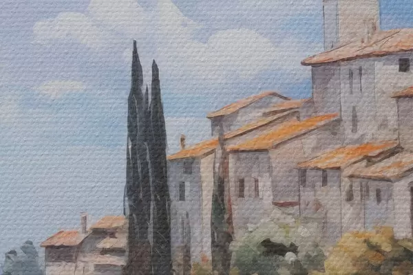 Het schilderij kan voorzichtig worden schoongeveegd met een droge zachte doek of spons; het wordt niet aanbevolen om natte producten te gebruiken. Het gebruik van een vochtige spons is alleen toegestaan als het schilderij gevernist is.