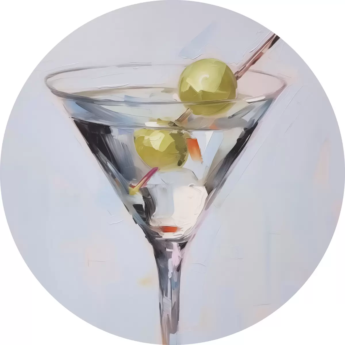 Ronde schilderijen Glas met een imitatie schilderij van een drankje Nr r46717