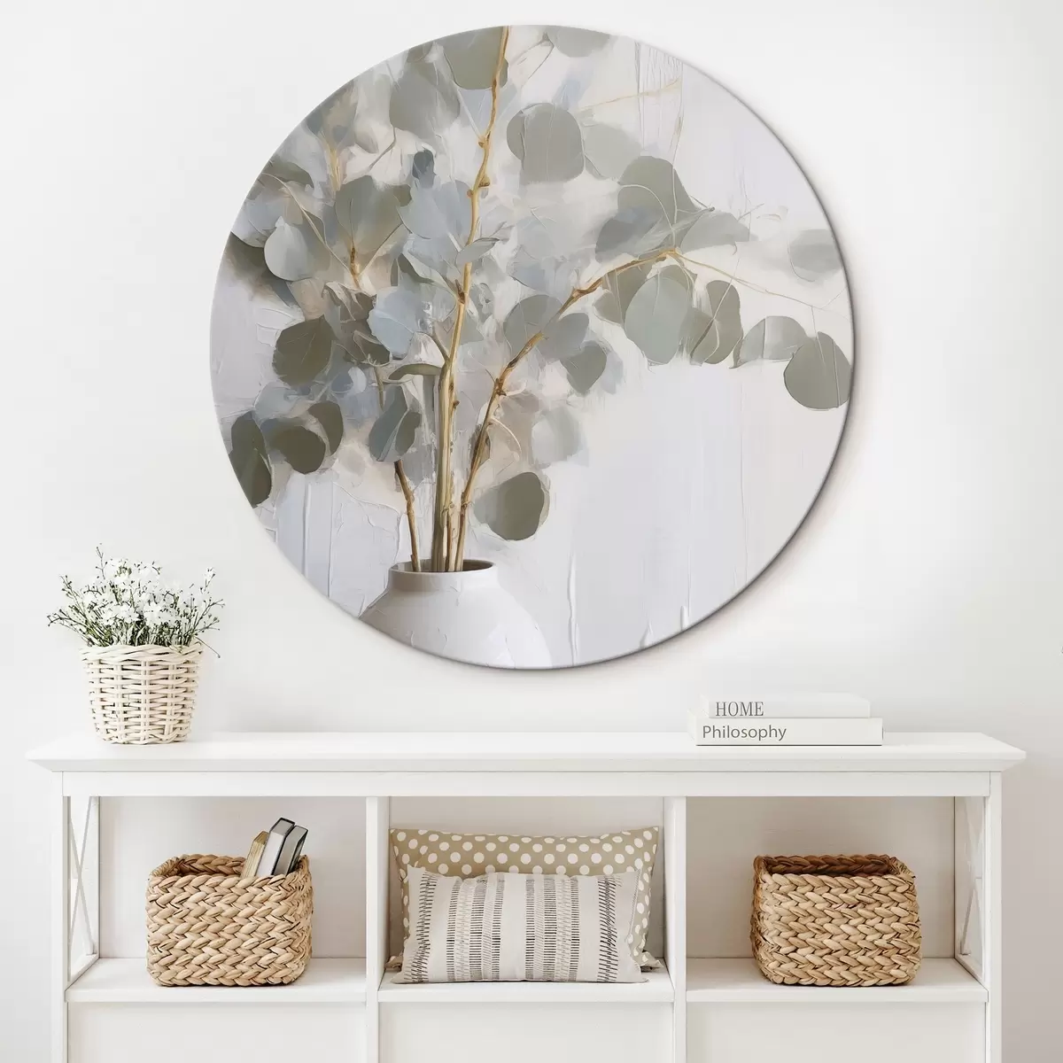 Ronde schilderijen Takjes in een vaas imitatie schilderij Nr r46719