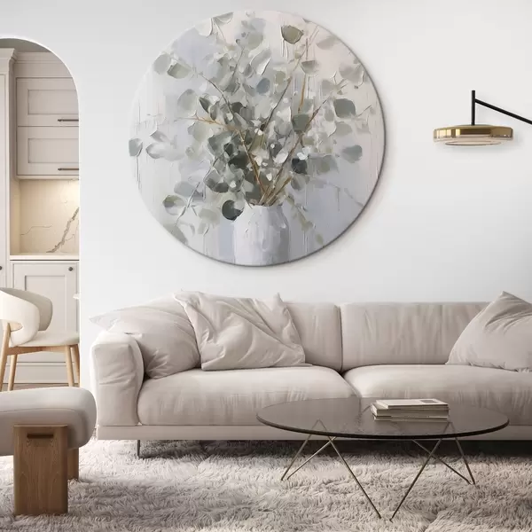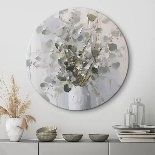 Ronde schilderijen Takken met bladeren in een vaas, imitatie schilderij Nr r46720