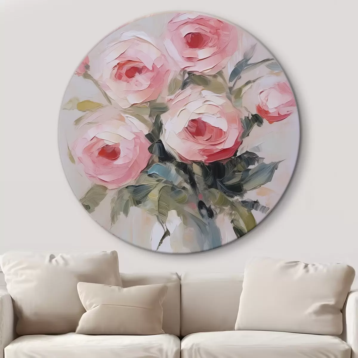 Ronde schilderijen Rozen in een vaas imitatie schilderij Nr r46742