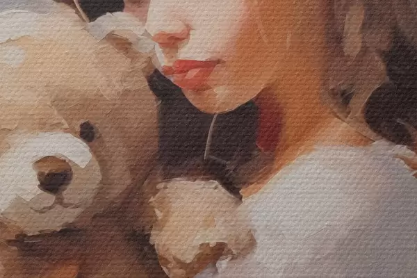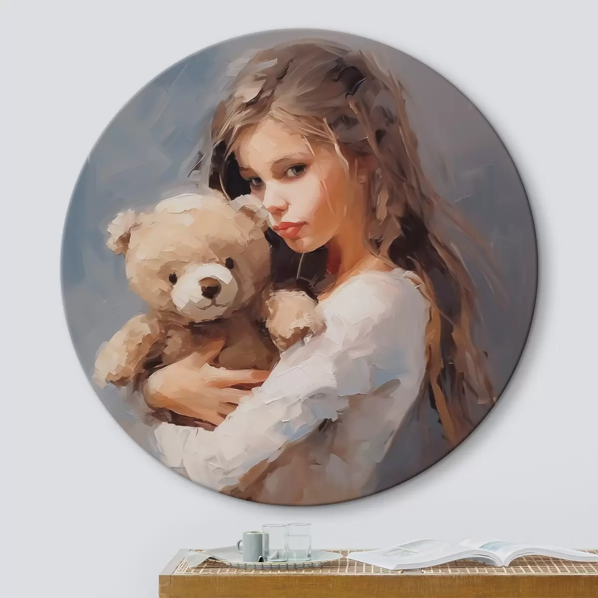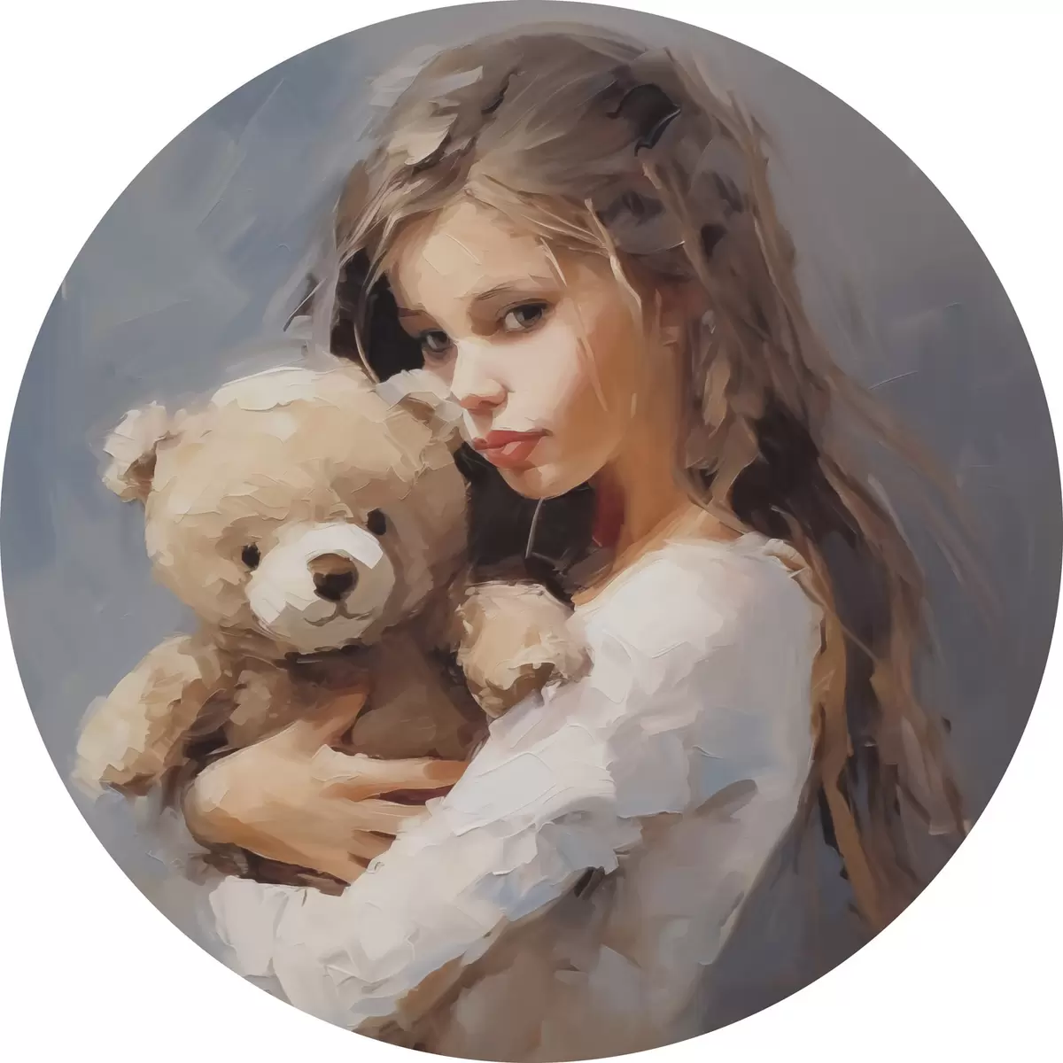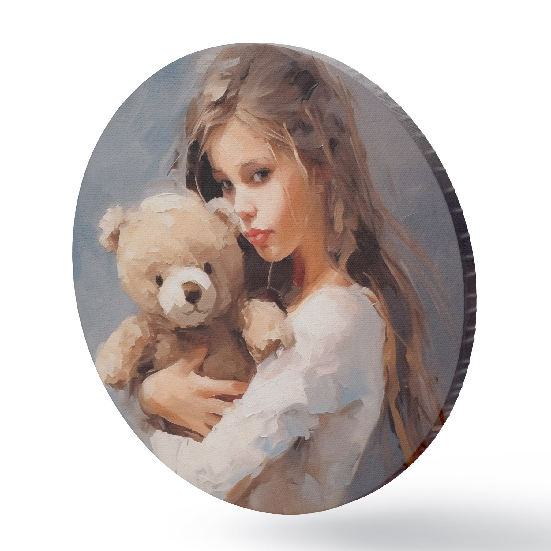 Ronde schilderijen Meisje met een speelgoedbeer, imitatie schilderij Nr r46746