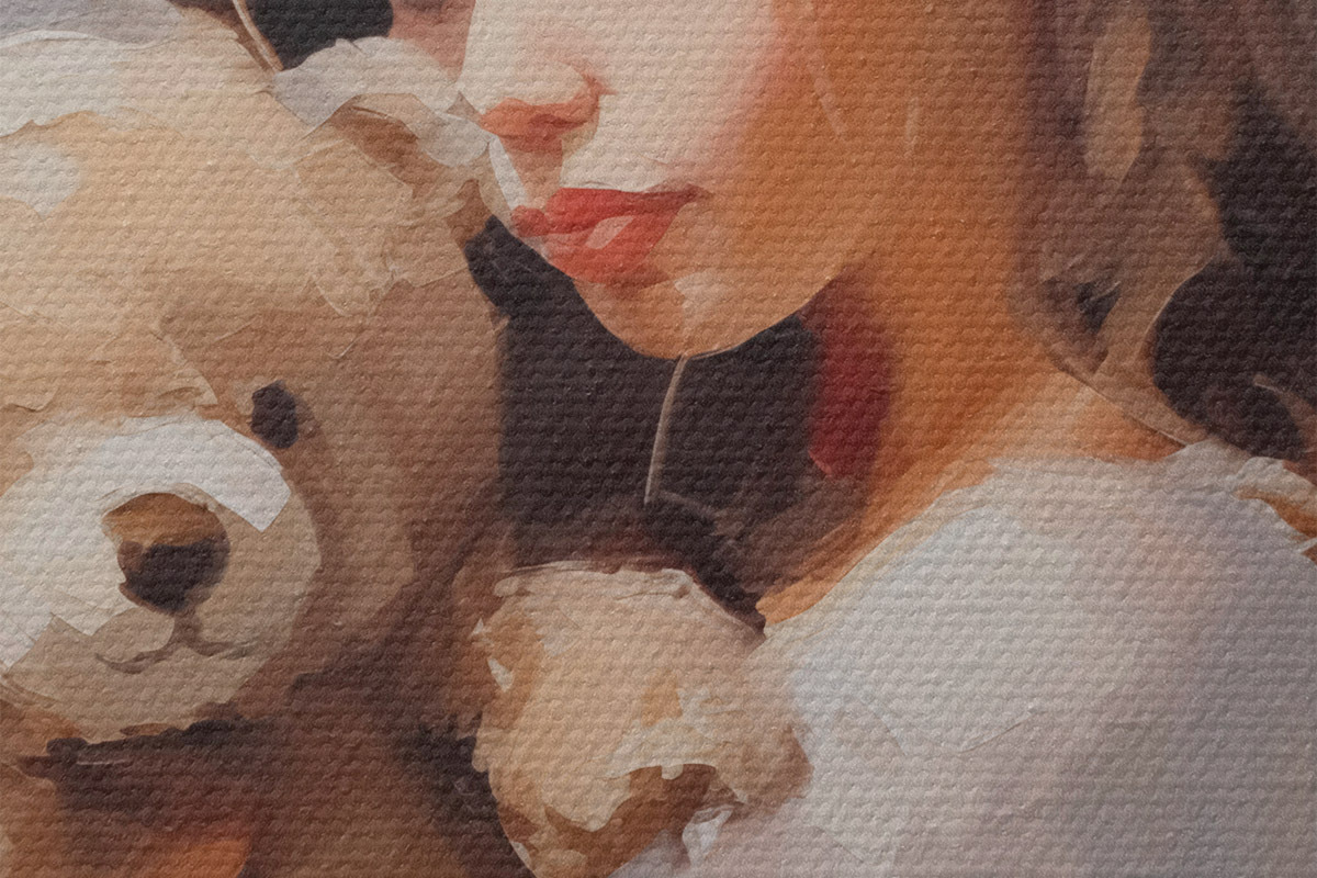 Er zijn drie soorten materiaal te bestellen: Economic Canvas - een dicht en duurzaam materiaal voor digitaal printen, identiek aan schildersdoek, waterdicht oppervlak, realistische weergave van details, materiaal met gemiddelde korrel. Premium Canvas - de textuur lijkt op die van schildersdoek (verweven kleine draden). Zachte, gedetailleerde reproductie van de afbeelding op een mat oppervlak. Eco-Premium - hoogwaardige 100% katoenen stof. Dankzij de natuurlijke katoenvezels is het materiaal duurzaam en slijtvast. Uitstekende kleurweergave en detail.