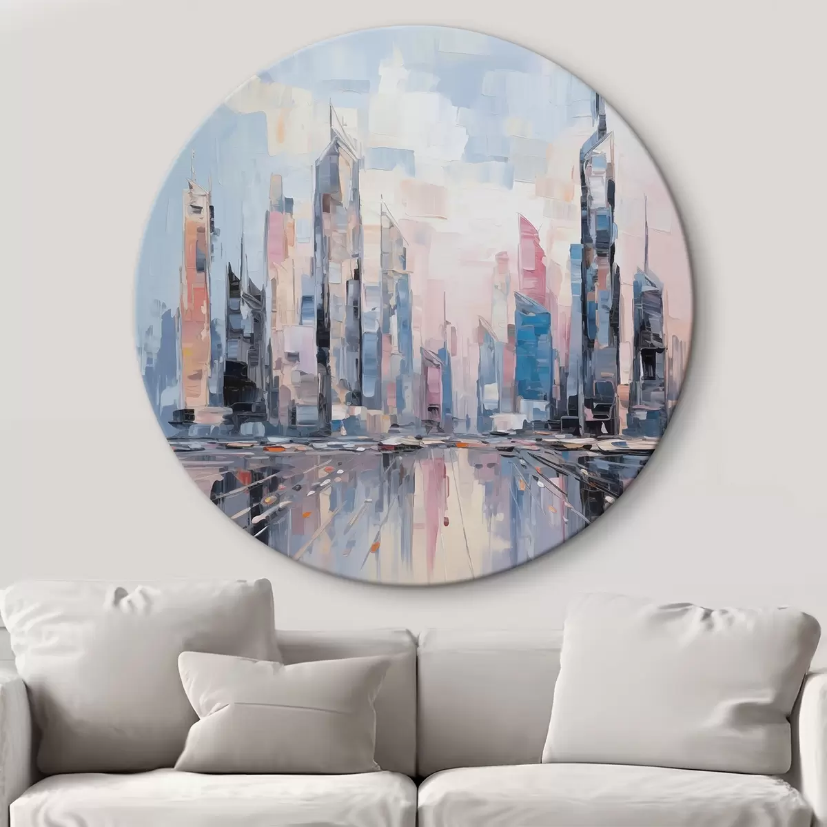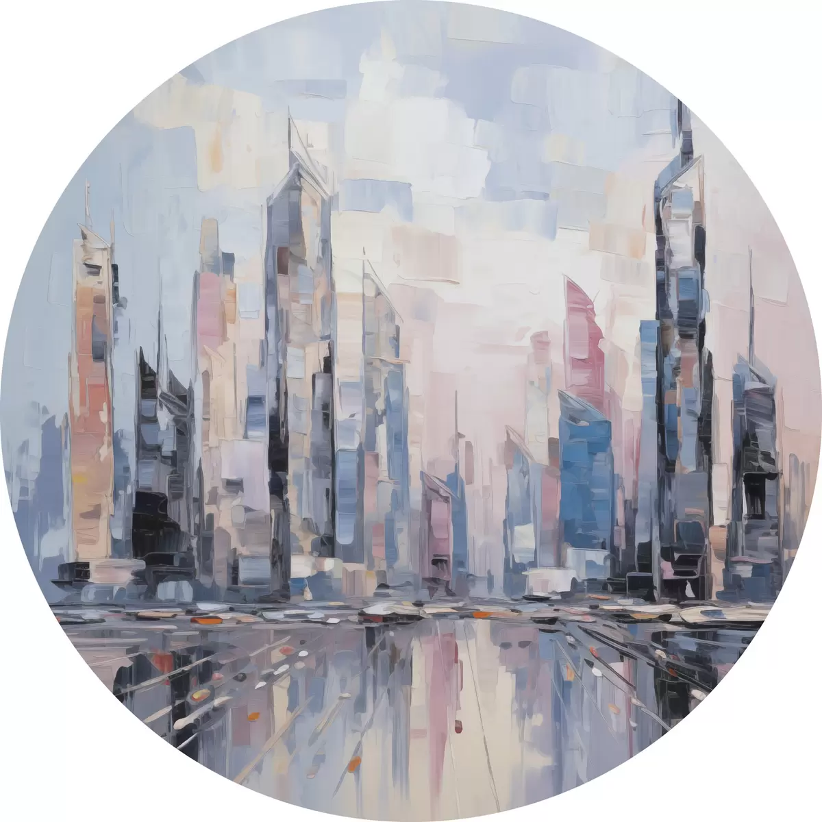 Ronde schilderijen Abstracte imitatie van schilderkunst in de stad Nr r46752