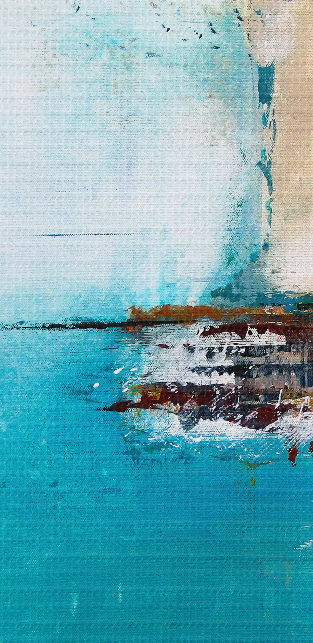 Schilderij Abstracte stad aan de azuurblauwe cote Art. s01169