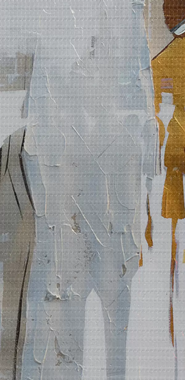 Het schilderij kan direct na ontvangst worden opgehangen. Het schilderij wordt opgespannen op een 2 cm breed houten spieraam.