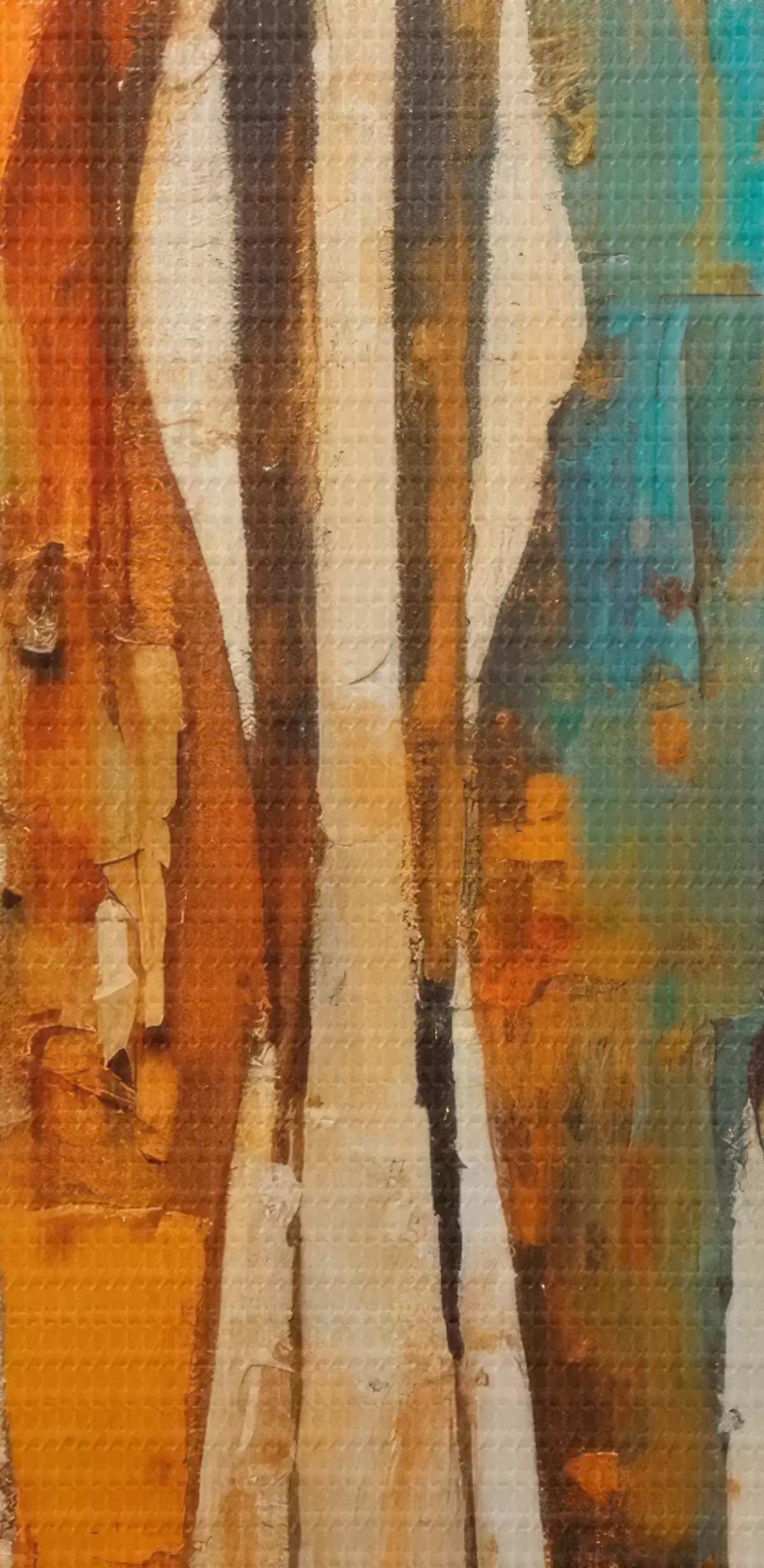 Het schilderij kan direct na ontvangst worden opgehangen. Het schilderij wordt opgespannen op een 2 cm breed houten spieraam.
