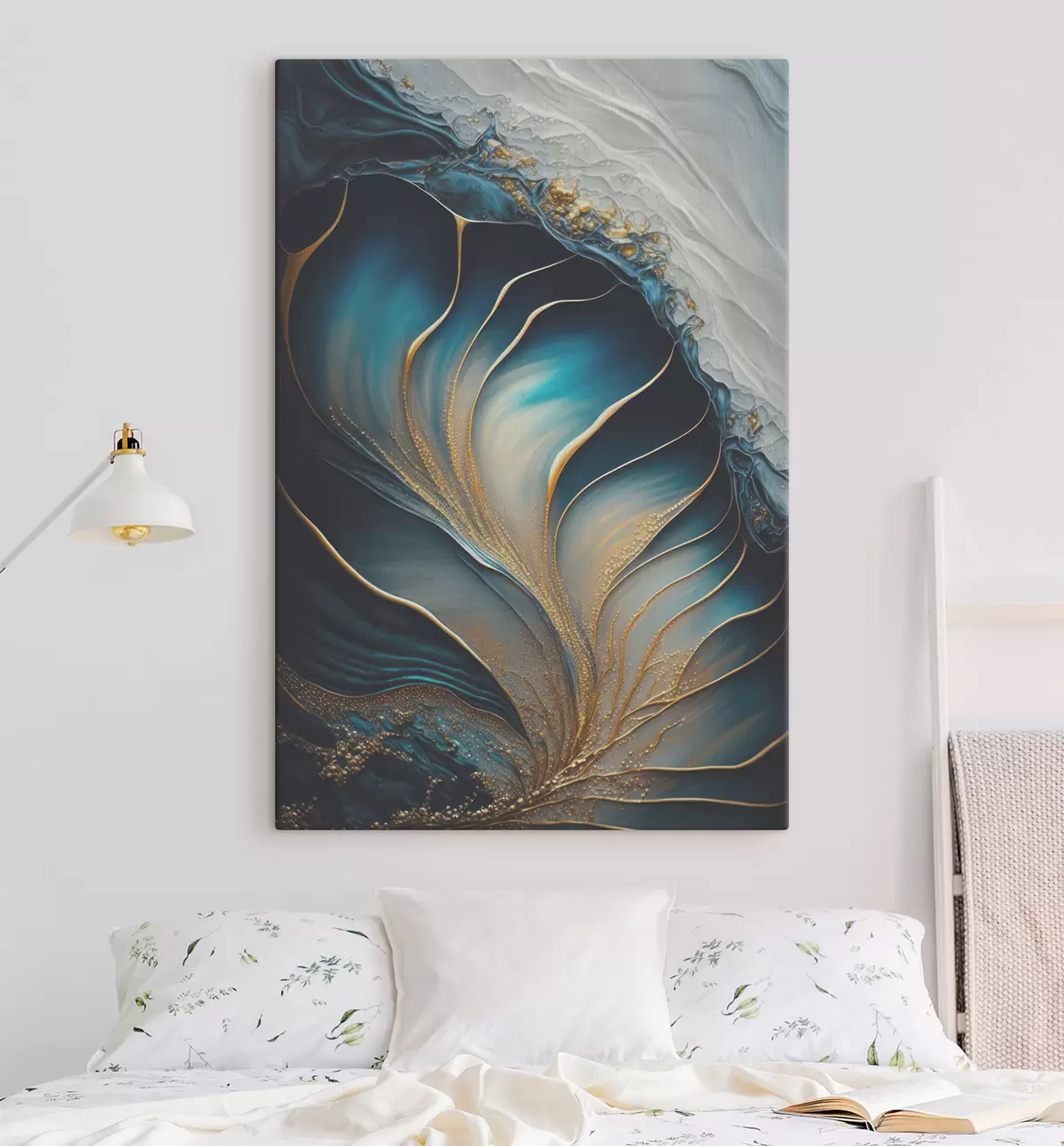 Je kunt het schilderij ophangen aan schroeven. Hiervoor leveren we bevestigingen bij onze foto's, zodat je de foto gemakkelijk kunt ophangen.