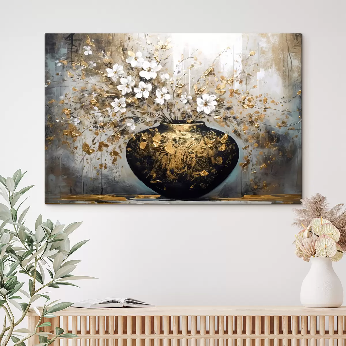 Schilderij Takken van witte bloemen in een vaas Art. s35377