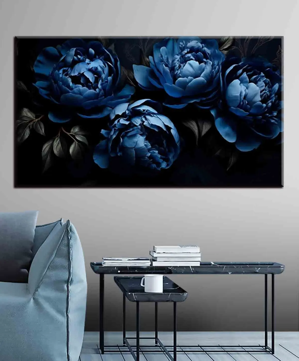Schilderijen Blauwe pioenrozen op een zwarte achtergrond s35571