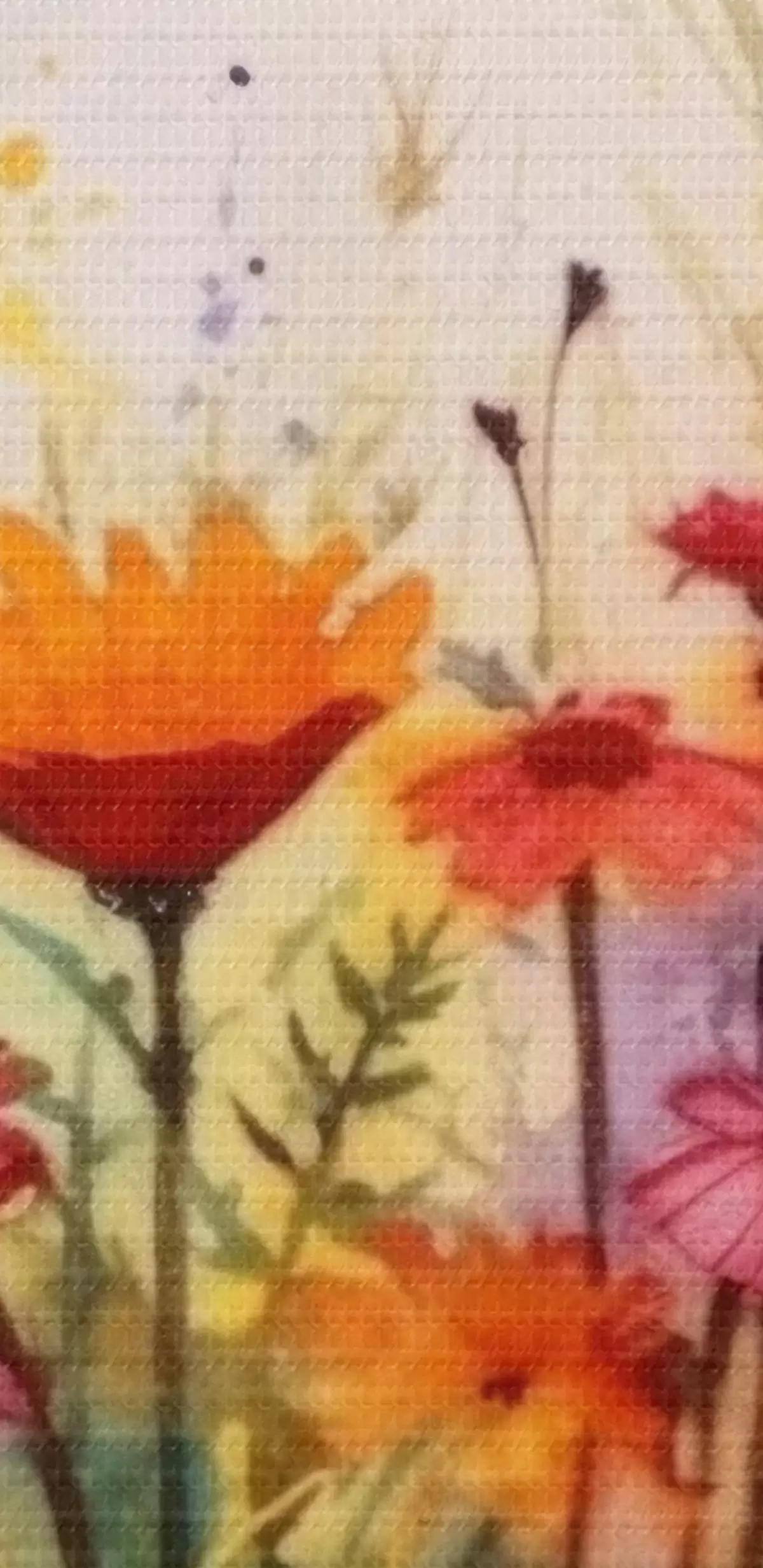 De fijne weving van draden op dit doek lijkt op het oppervlak van professionele schildersdoeken.