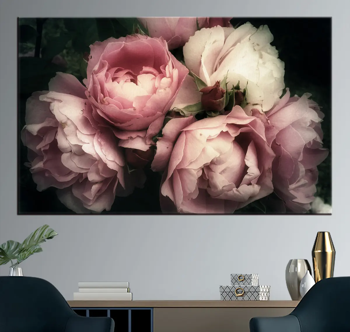 Schilderij Roze pioenrozen op een zwarte achtergrond Art. s35242