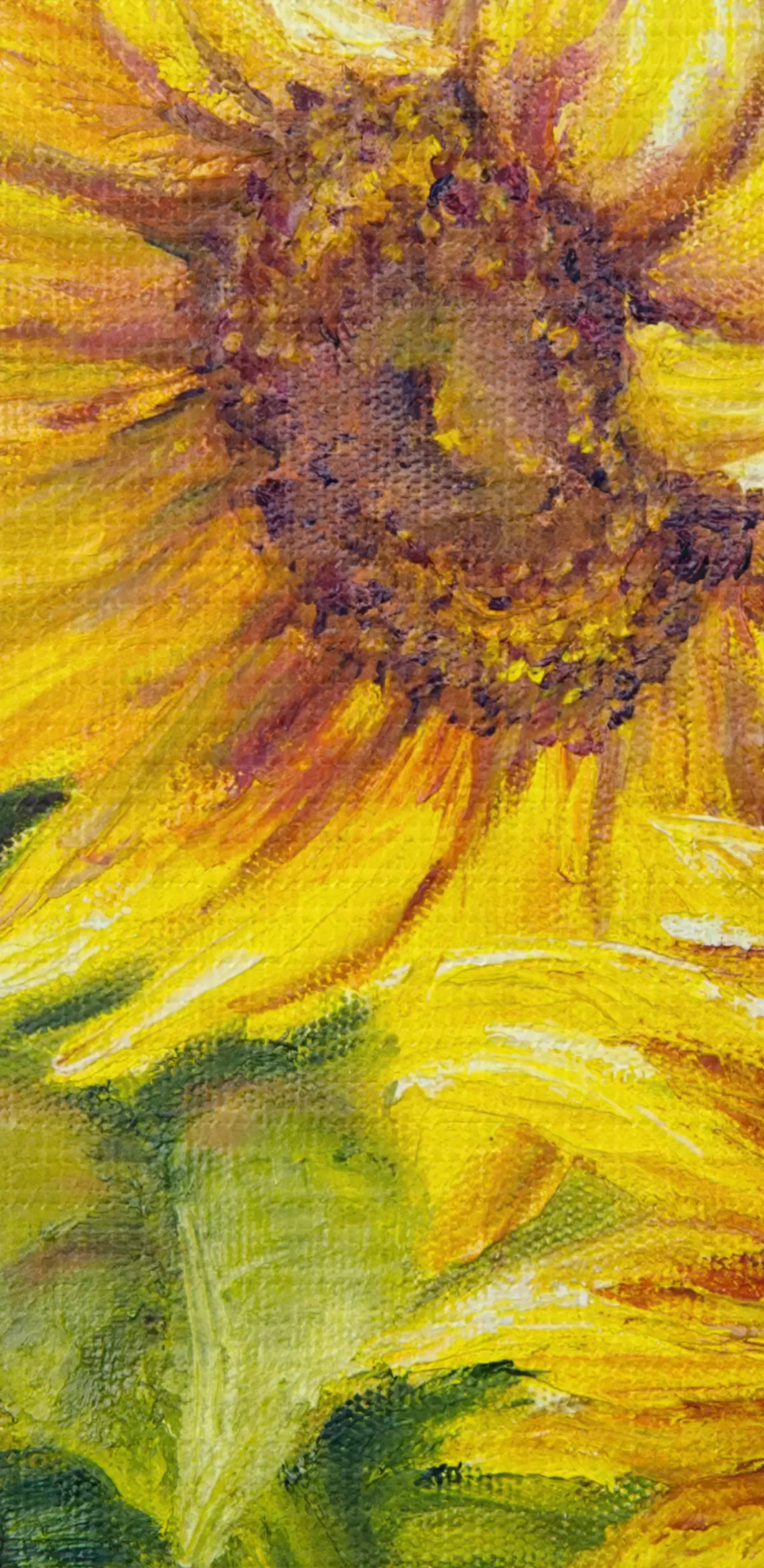 Het schilderij kan direct na ontvangst worden opgehangen. Het schilderij wordt opgespannen op een 2 cm breed houten spieraam.