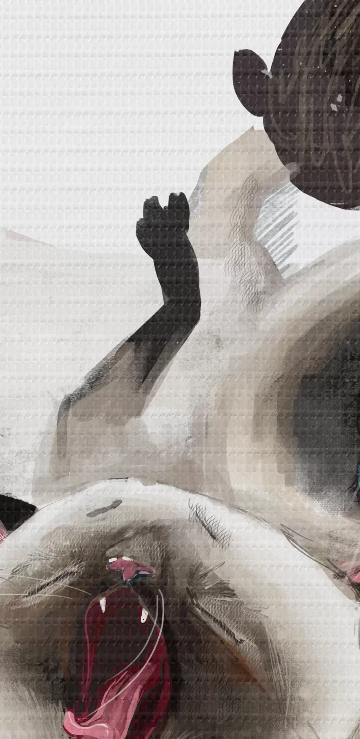 Om het doek op te spannen op spielatten zonder de afbeelding te beschadigen, gebruiken we gespiegeld beeld.