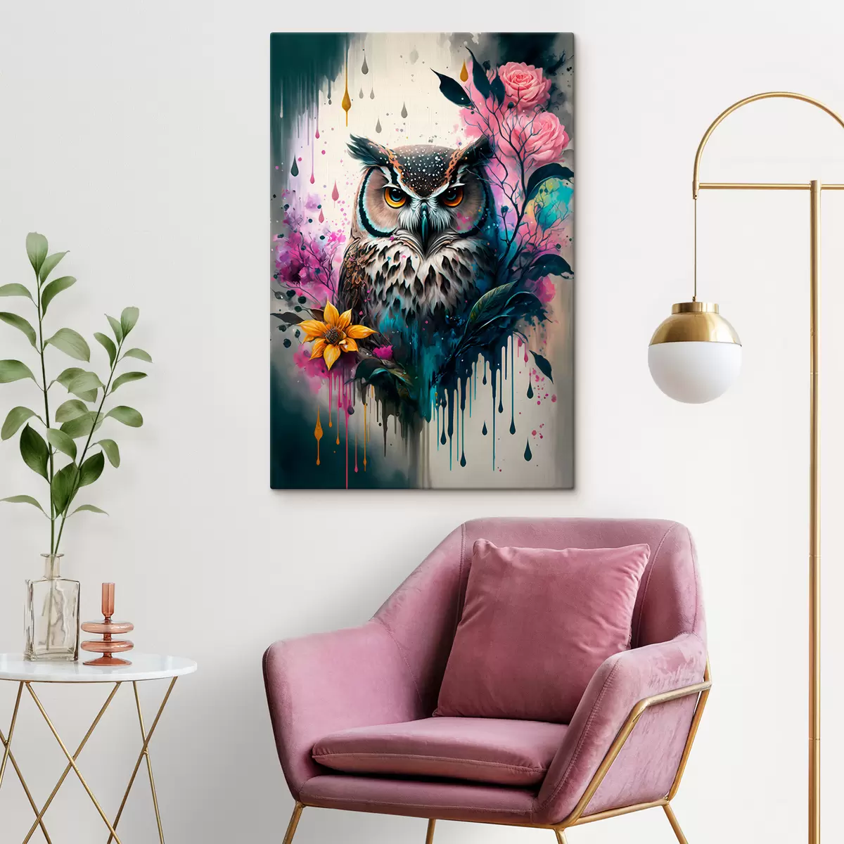 Schilderijen Dagelijkse uil met bloemen s35348