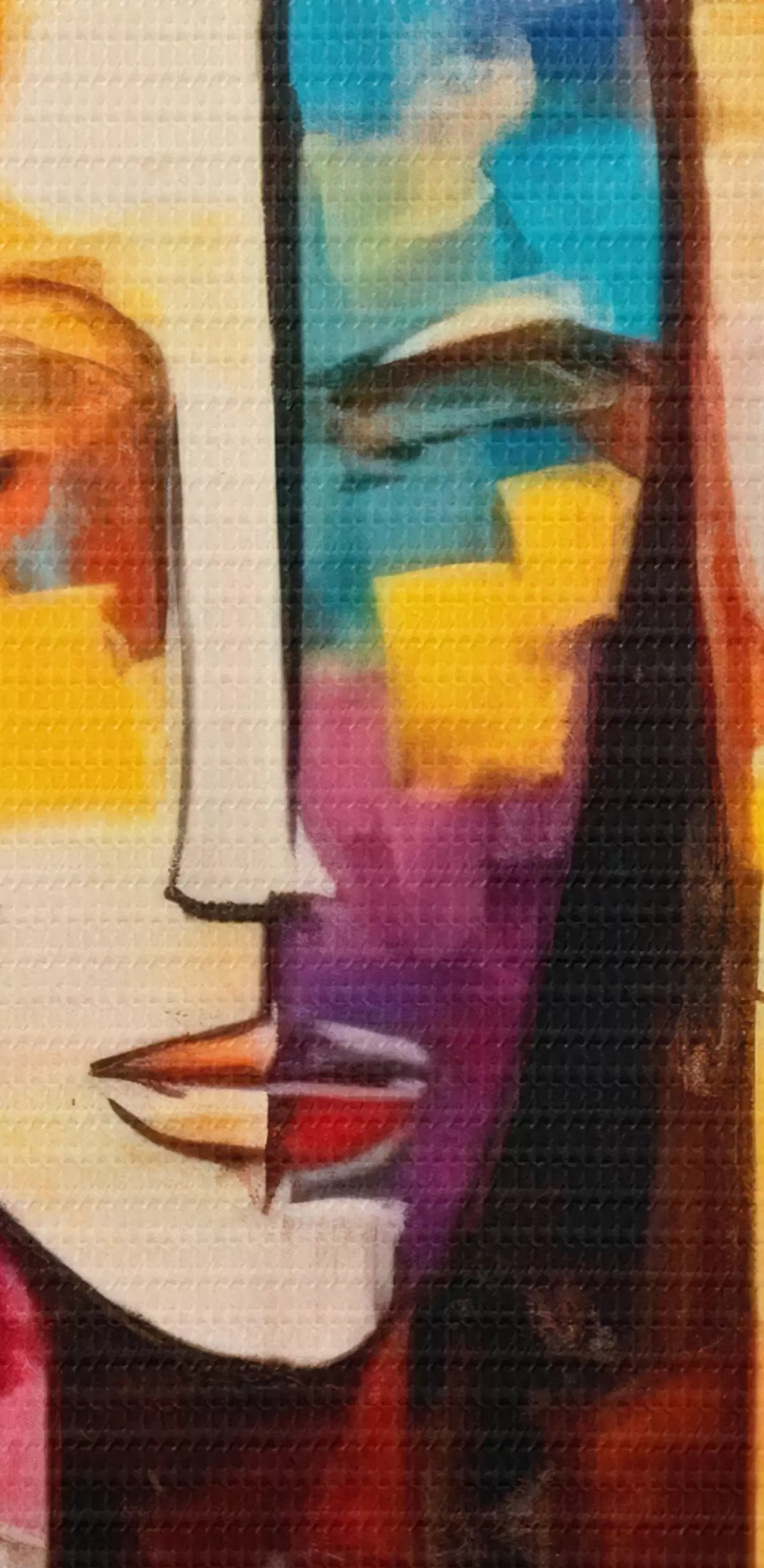 De fijne weving van draden op dit doek lijkt op het oppervlak van professionele schildersdoeken.
