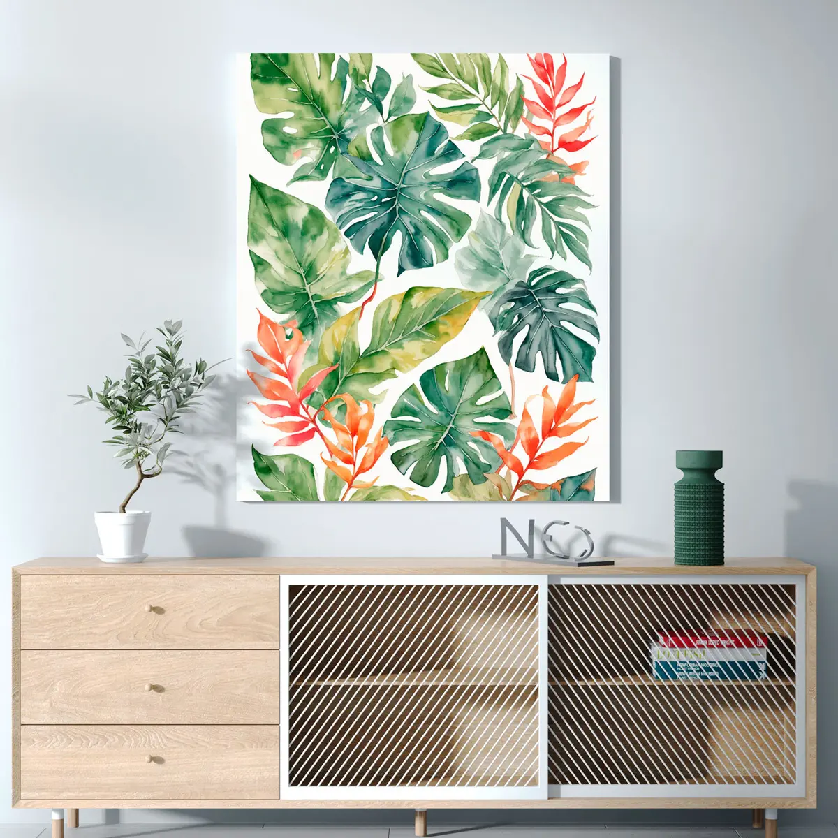 Schilderij Tropische kleurrijke bladeren Art. s36131
