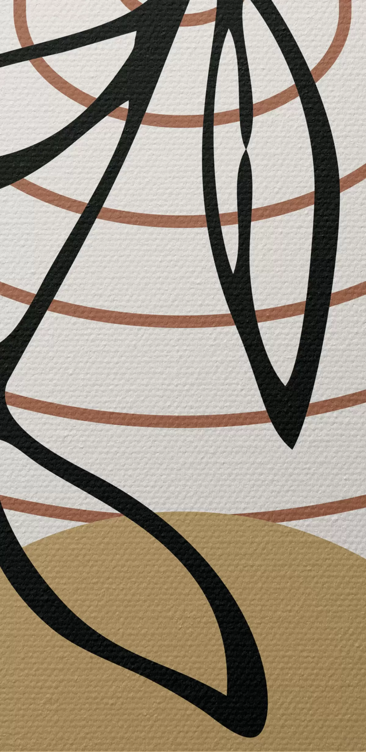 Schilderij Geometrische halve cirkels met hangende abstracte plant en spiraal Art. s36188
